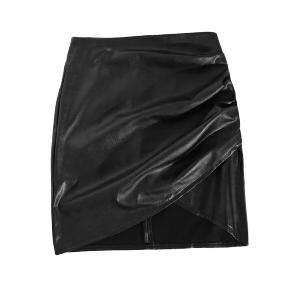 Женская юбка с рюшами, однотонная мини-юбка из искусственной кожи с застежкой-молнией и асимметричным подолом, юбка с высокой талией и рюшами, уличная одежда, 2021