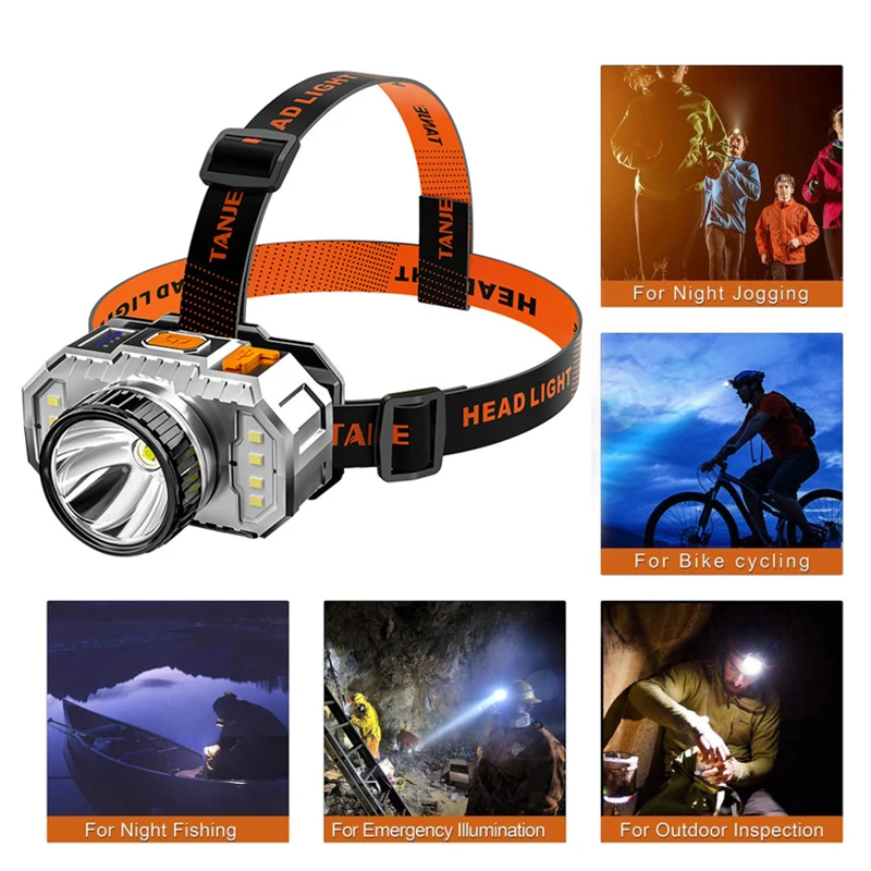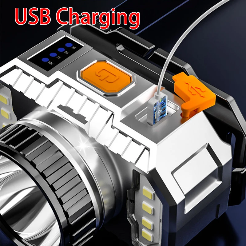 Светодиодный налобный фонарь с зарядкой от USB, яркий налобный фонарь со встроенным аккумулятором 18650, уличный налобный фонарь для рыбалки, кемпинга, налобный фонарь