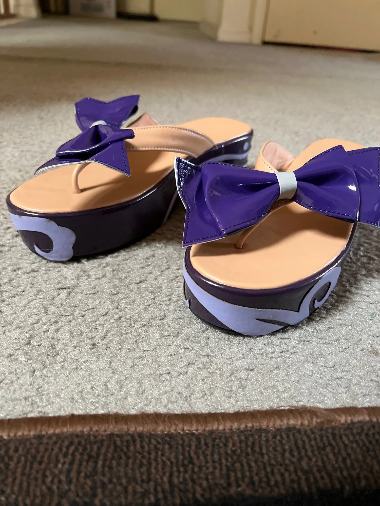 Женские туфли для косплея Genshin Impact Sangonomiya Kokomi, обувь для женщин, деревянные Сабо, обувь на высоких каблуках с бантом, реквизит для вечеринки на Хэллоуин, парики, головной убор