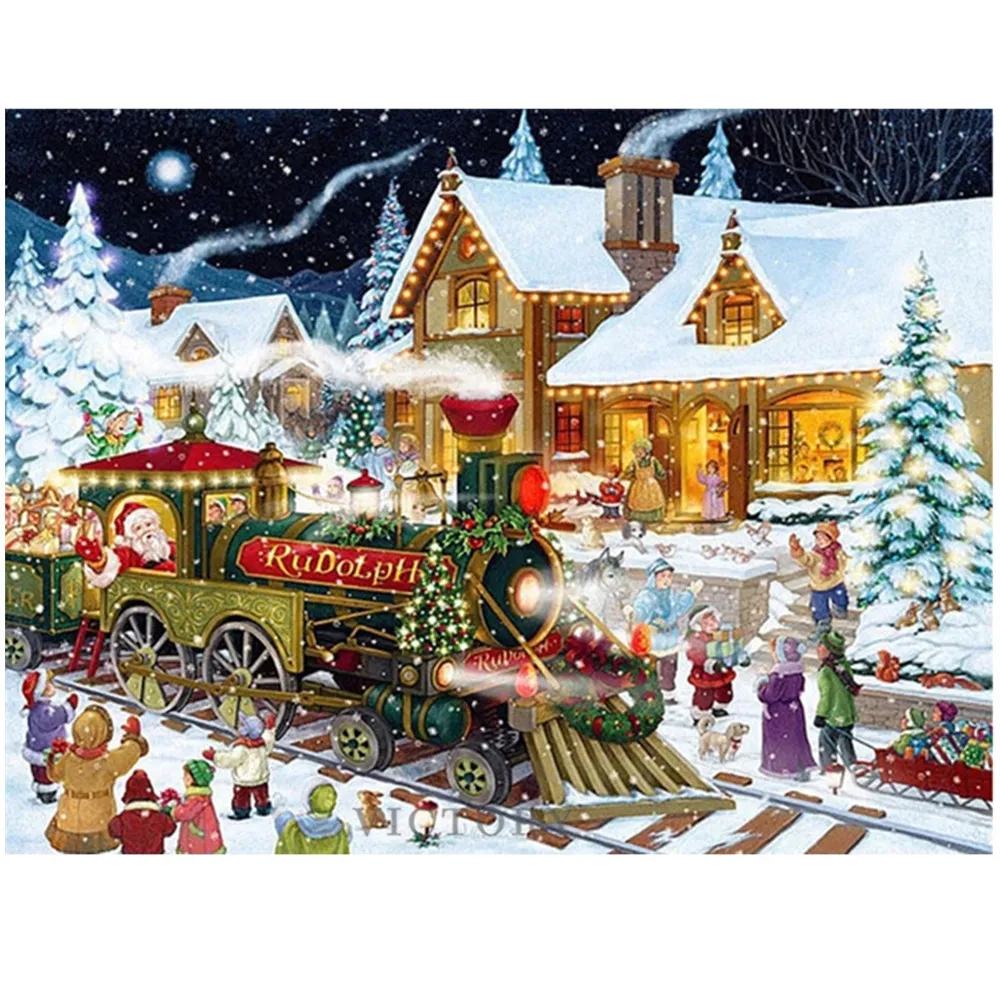 Новое поступление, квадратная Алмазная картина Рождественская Алмазная вышивка поезд, Дед Мороз, вышивка, декор детской комнаты