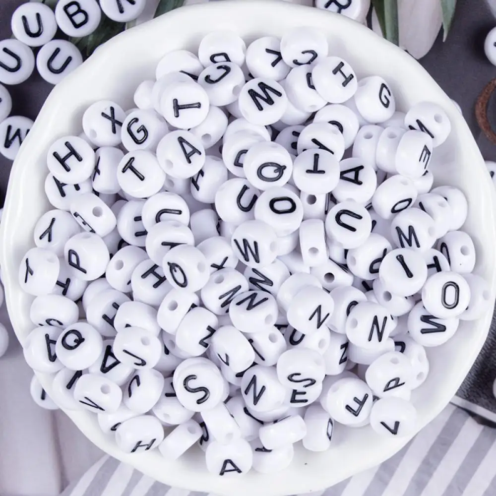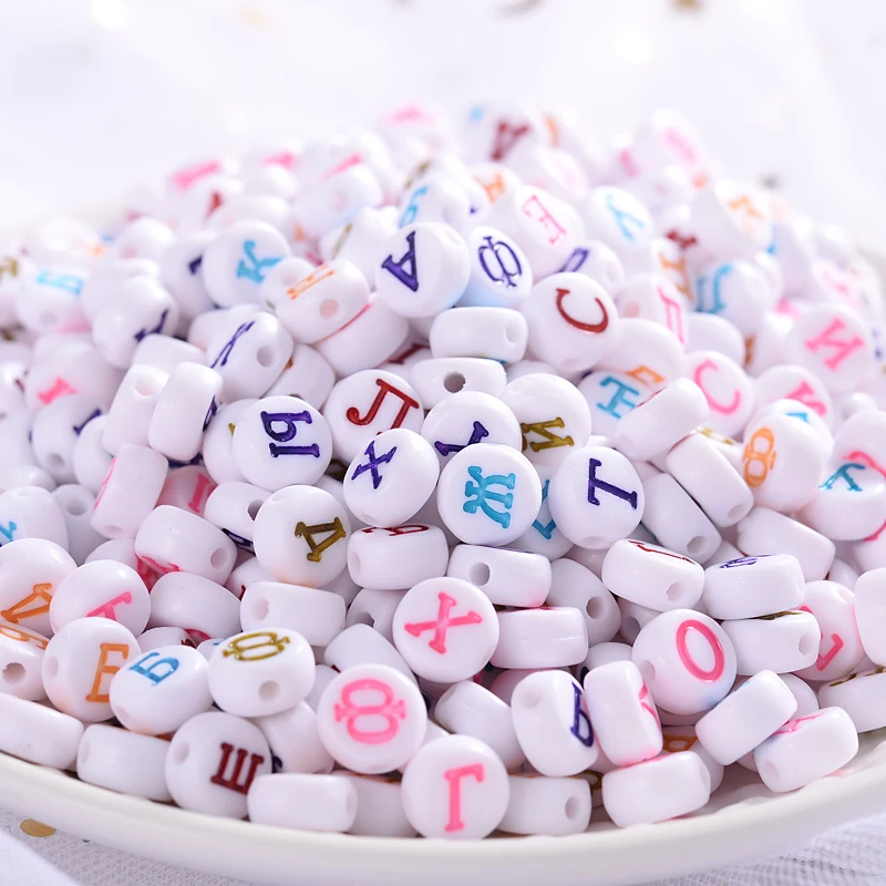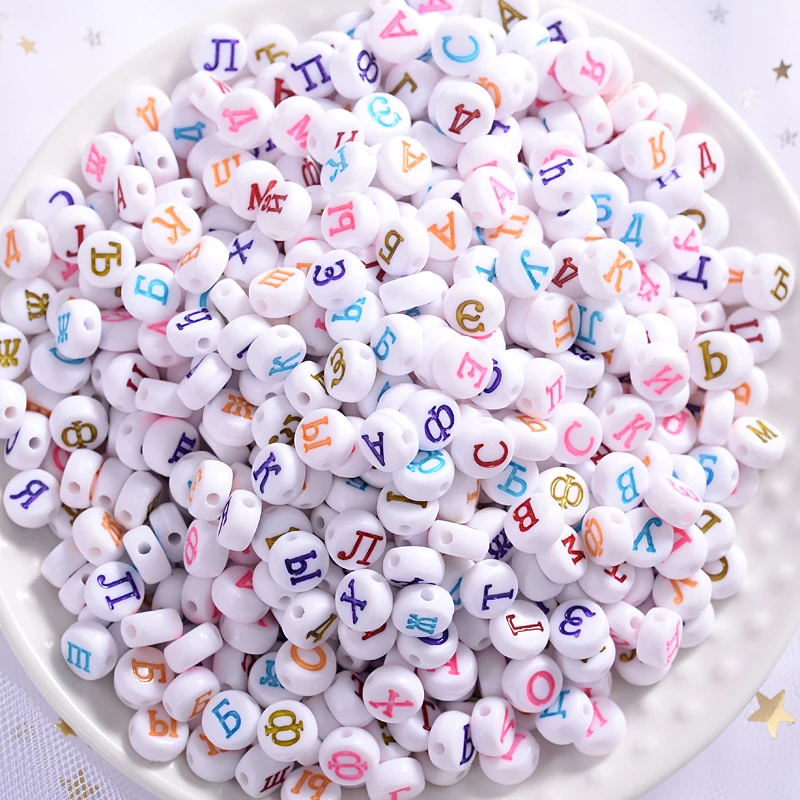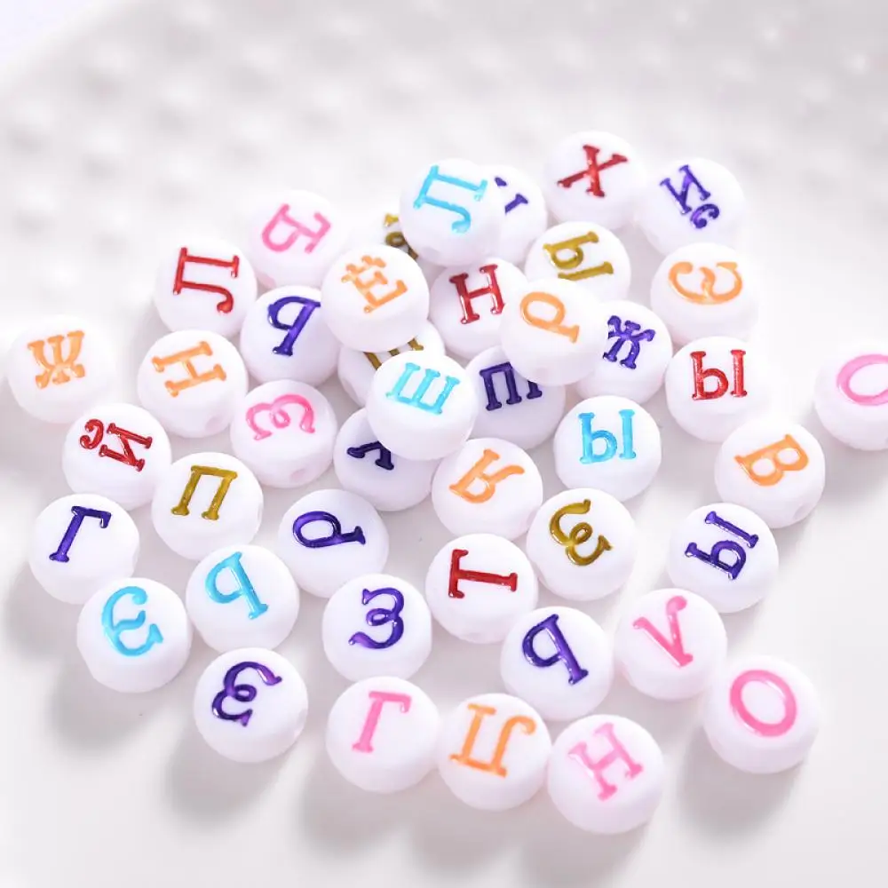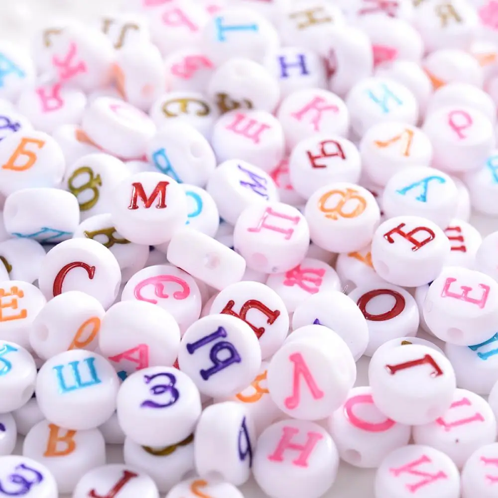 100 шт.лот смешанные белые русские буквы акриловые бусины круглый плоский Алфавит свободные разделительные бусины для браслетов ожерелий ювелирных изделий