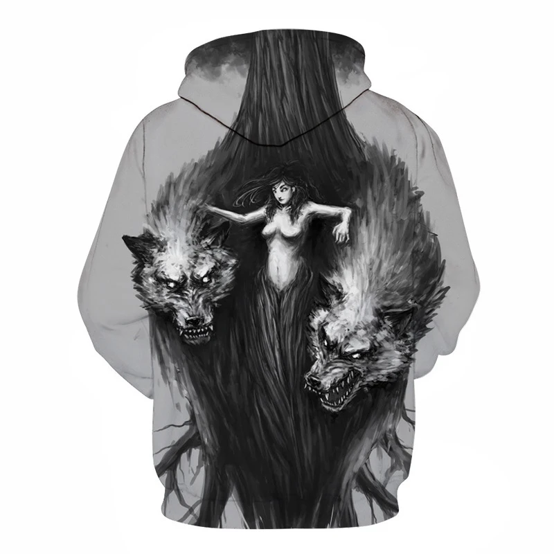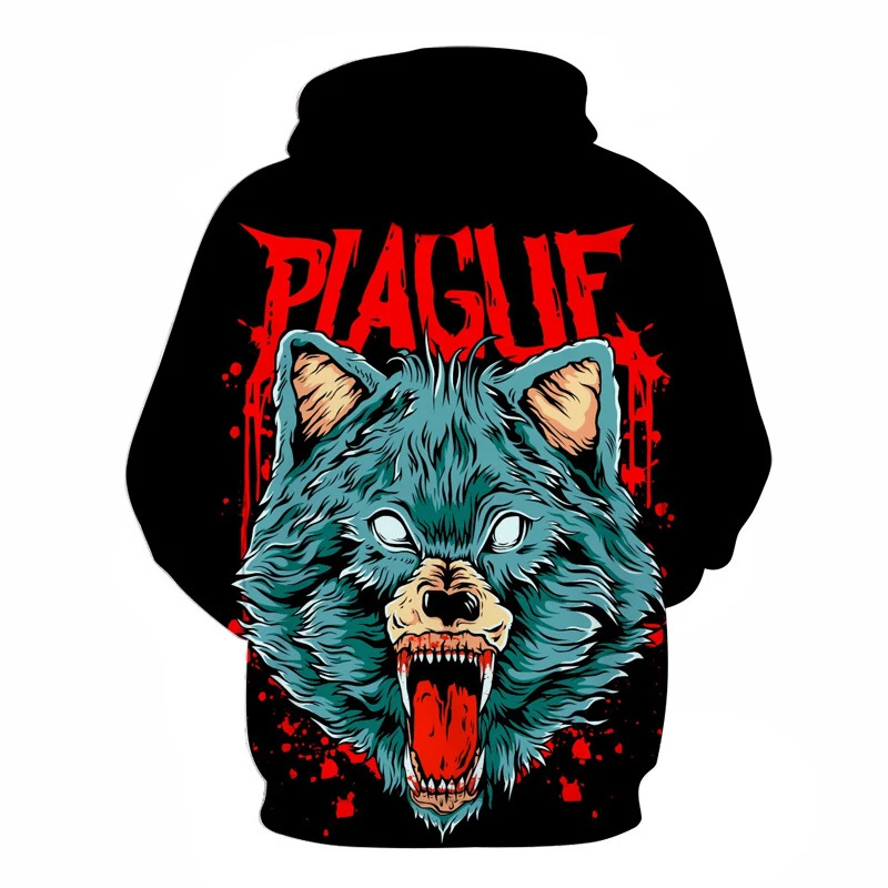 Толстовка Мужскаяженская оверсайз, модная двухсторонняя толстовка с 3D-принтом волка, одежда в стиле хип-хоп, весна-осень