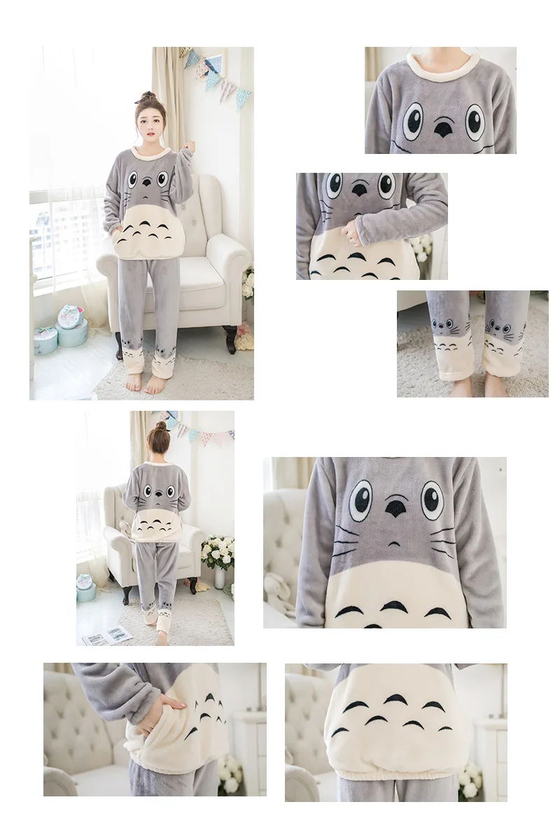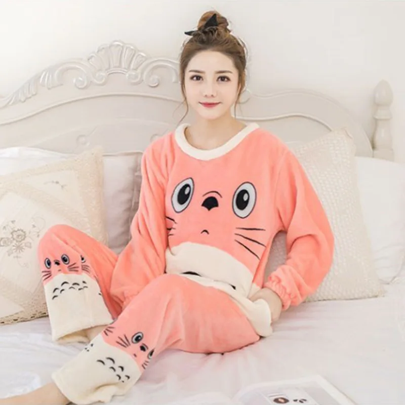 Осень-зима 2021, пижамный комплект, женская рубашка и брюки для сна, одежда для сна, теплая фланелевая ночная рубашка, Женская пижама с мультяшным медведем и животными