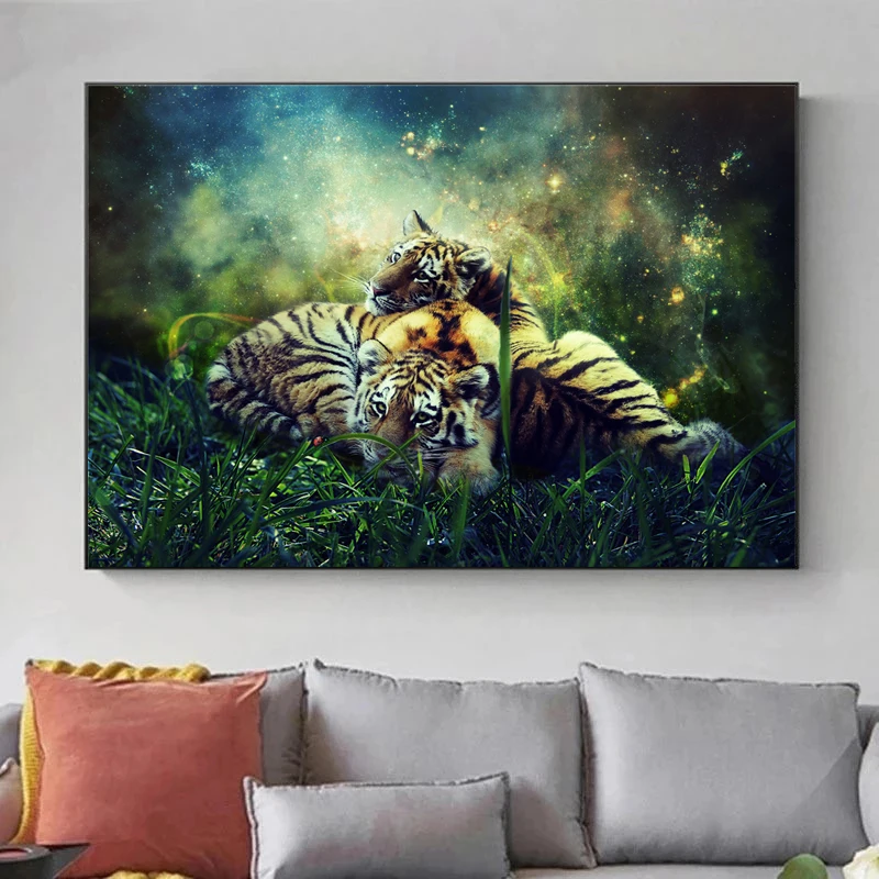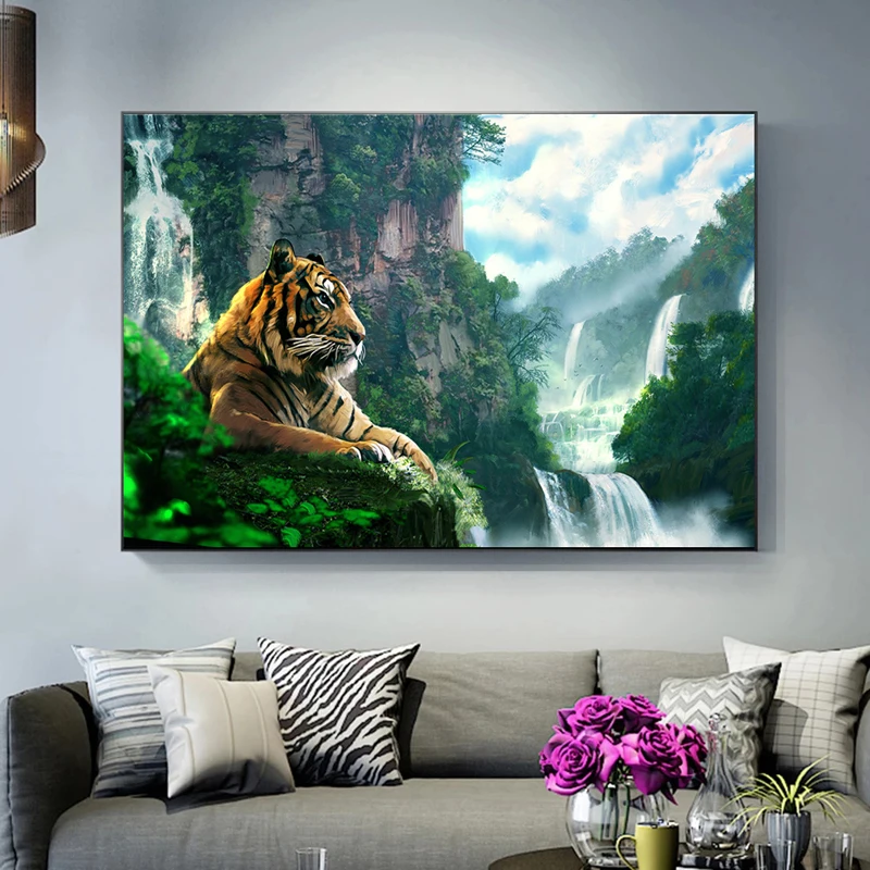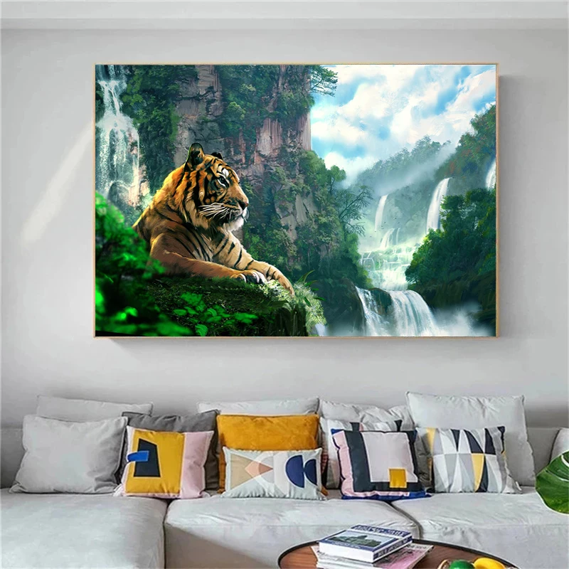 Тигр природный пейзаж Картина на холсте животное рамка Декоративные плакаты и принты Настенная картина для гостиной домашний декор
