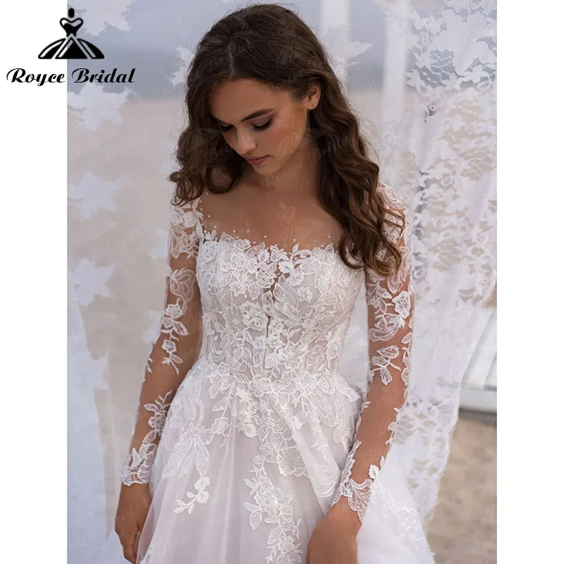 Пляжная Цветочная Кружевная аппликация с длинным рукавом фонарик с пуговицами открытой спиной ТРАПЕЦИЕВИДНОЕ ПЛАТЬЕ ПРИНЦЕССЫ 2022