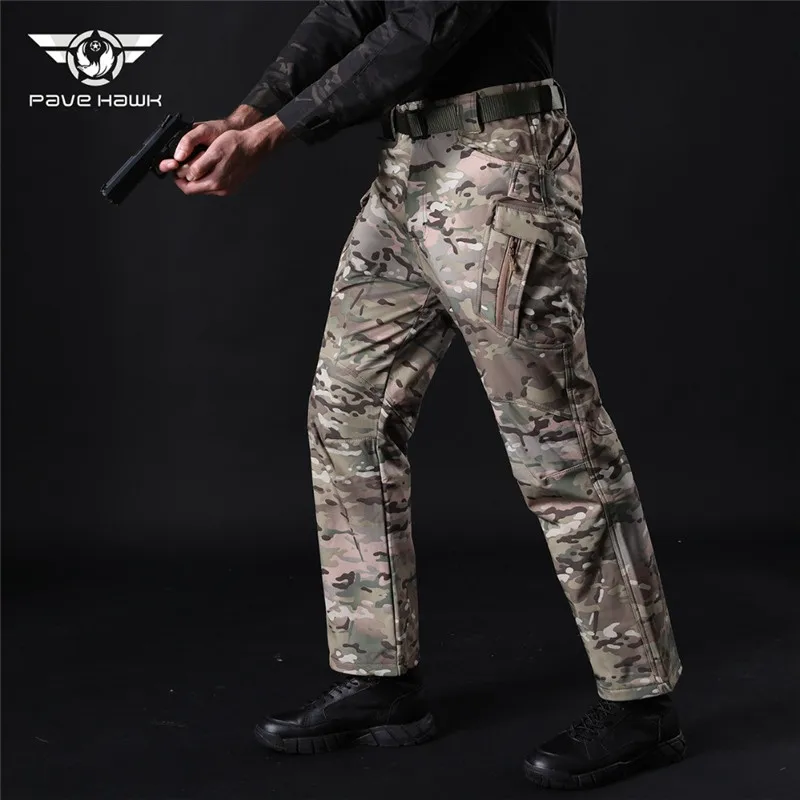 Мужские утепленные флисовые брюки IX9, зимние военные тактические брюки, камуфляжные брюки-карго для охоты, теплые водонепроницаемые боевые брюки