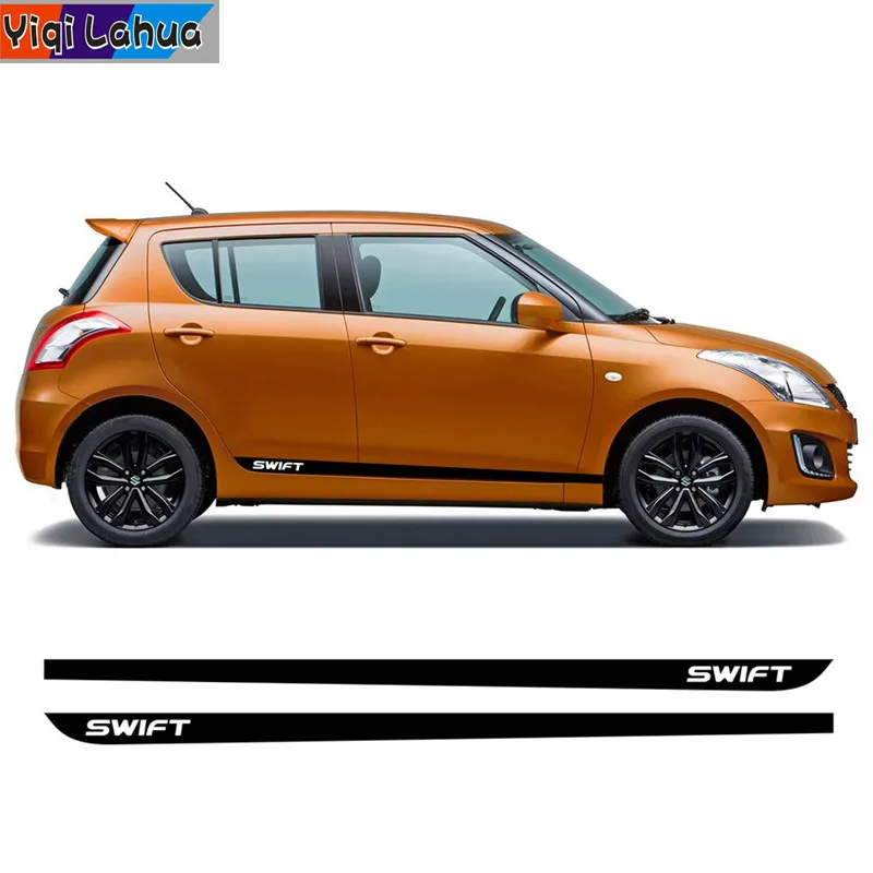 Спортивные полосы из углеродного волокна для SUZUKI Swift, наклейка на боковую дверь автомобиля, украшение кузова автомобиля, виниловые наклейки, внешние аксессуары, 1 комплект