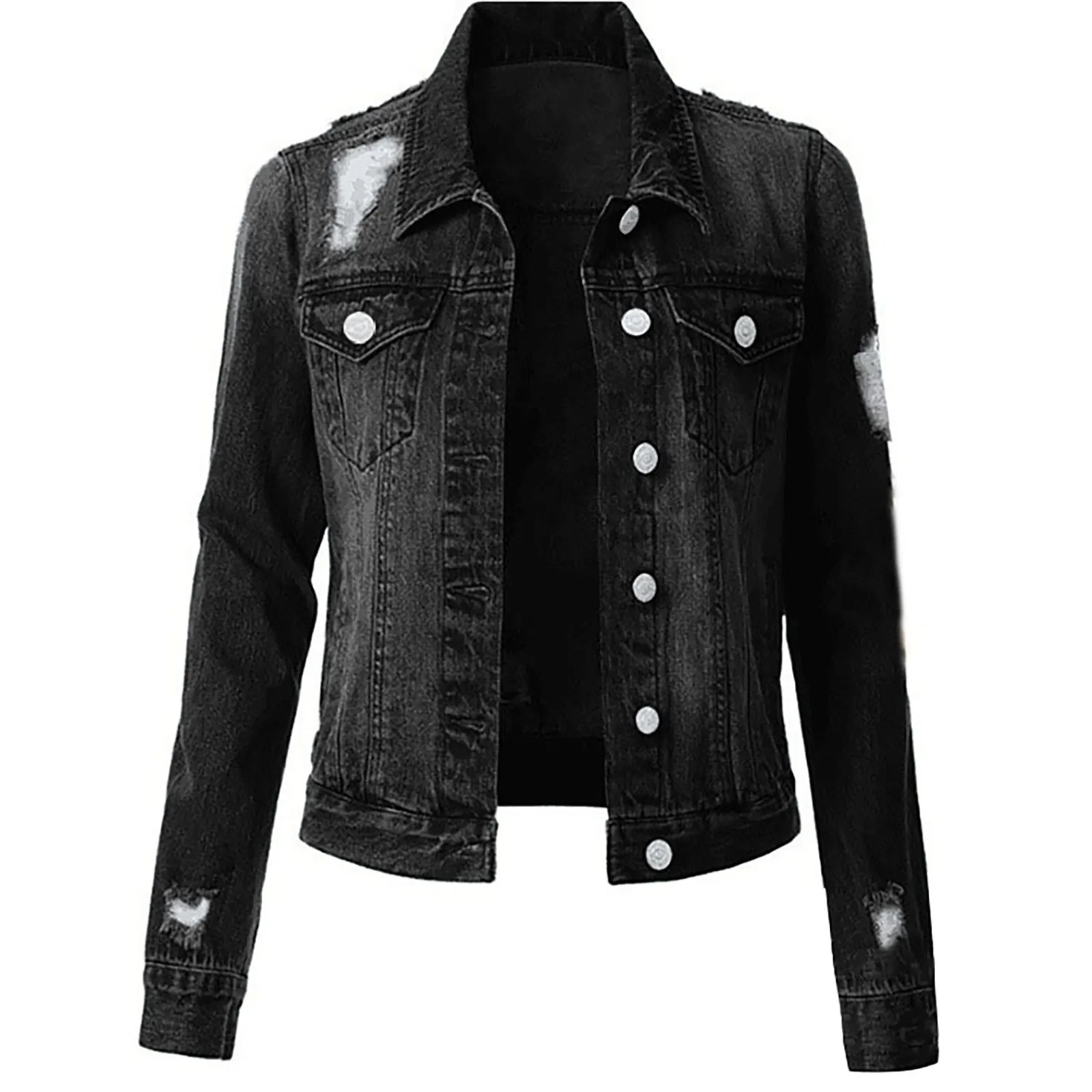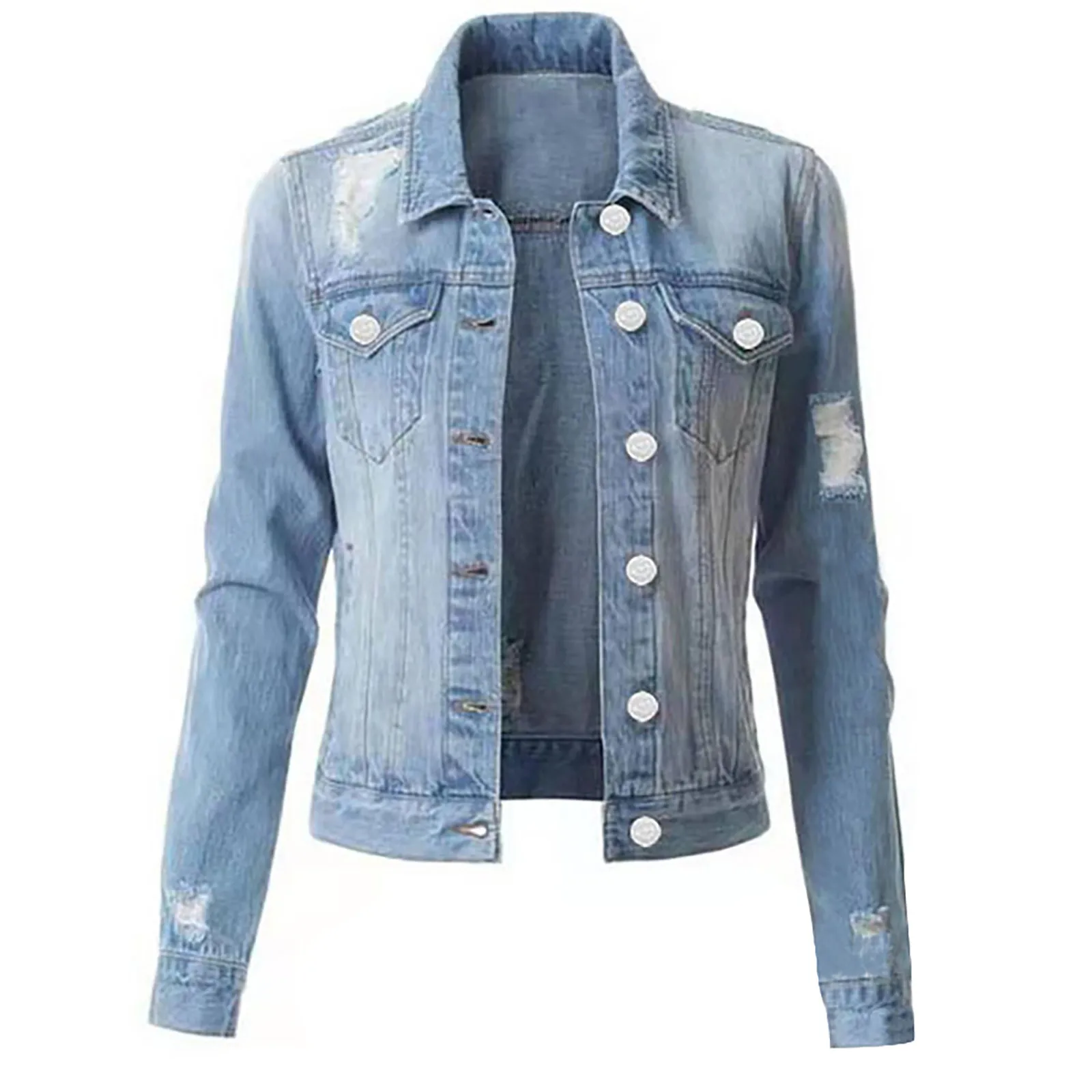 Женская джинсовая куртка, Повседневная модная джинсовая куртка с длинным рукавом, облегающая осенне-зимняя женская верхняя одежда с бусинами, джинсовое пальто, Прямая поставка, оптовая продажа