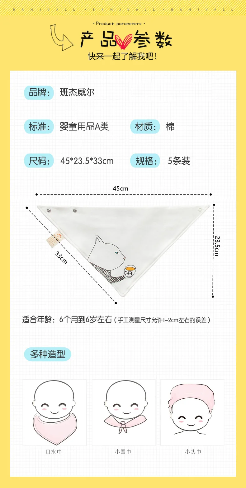 Детский треугольный шарф слюнявчик из чистого хлопка двухслойный слюнявчик на пуговицах для новорожденных детей пять пакетов для детей