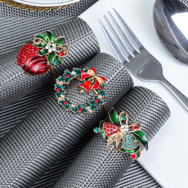 Рождественские кольца для салфеток, подставка из сплава, кольцо-держатель для салфеток с вырезами, пряжка для салфеток с Санта-Клаусом, настольное украшение для банквечерние