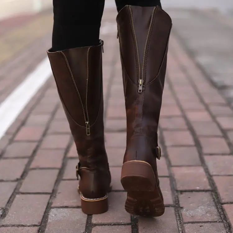 Женские ботинки на низком каблуке PROWOW, однотонные длинные сапоги...