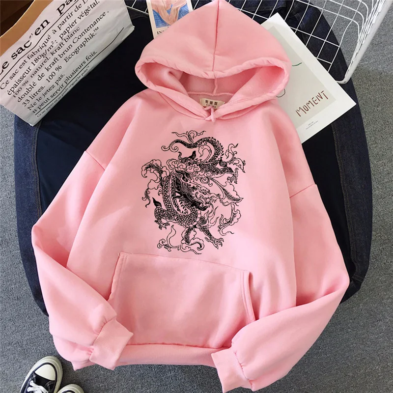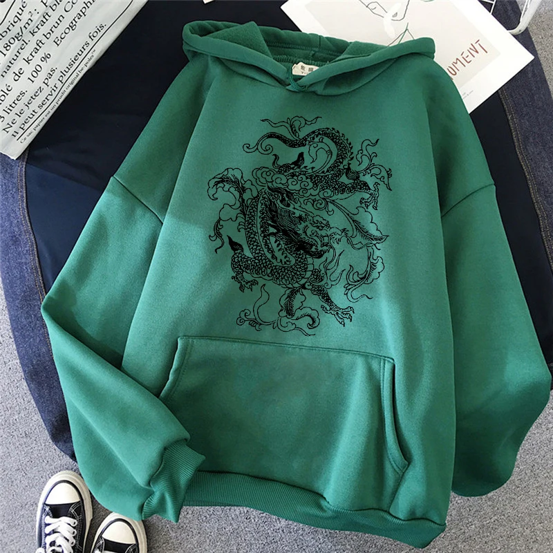 2021 толстовки Женская мода Осень Дракон Паттен Женский пуловер с капюшоном зимняя одежда свитшоты Свободная Женская толстовка с капюшоном