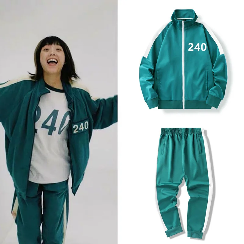 Зеленое пальто для игры кальмар, спортивная одежда, кардиган, свитер, Новинка осени 2021, костюм для пары, мужская одежда