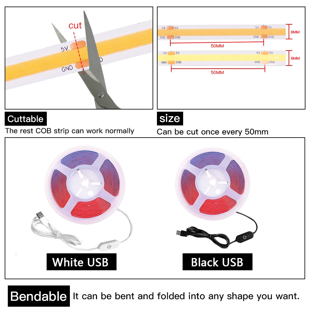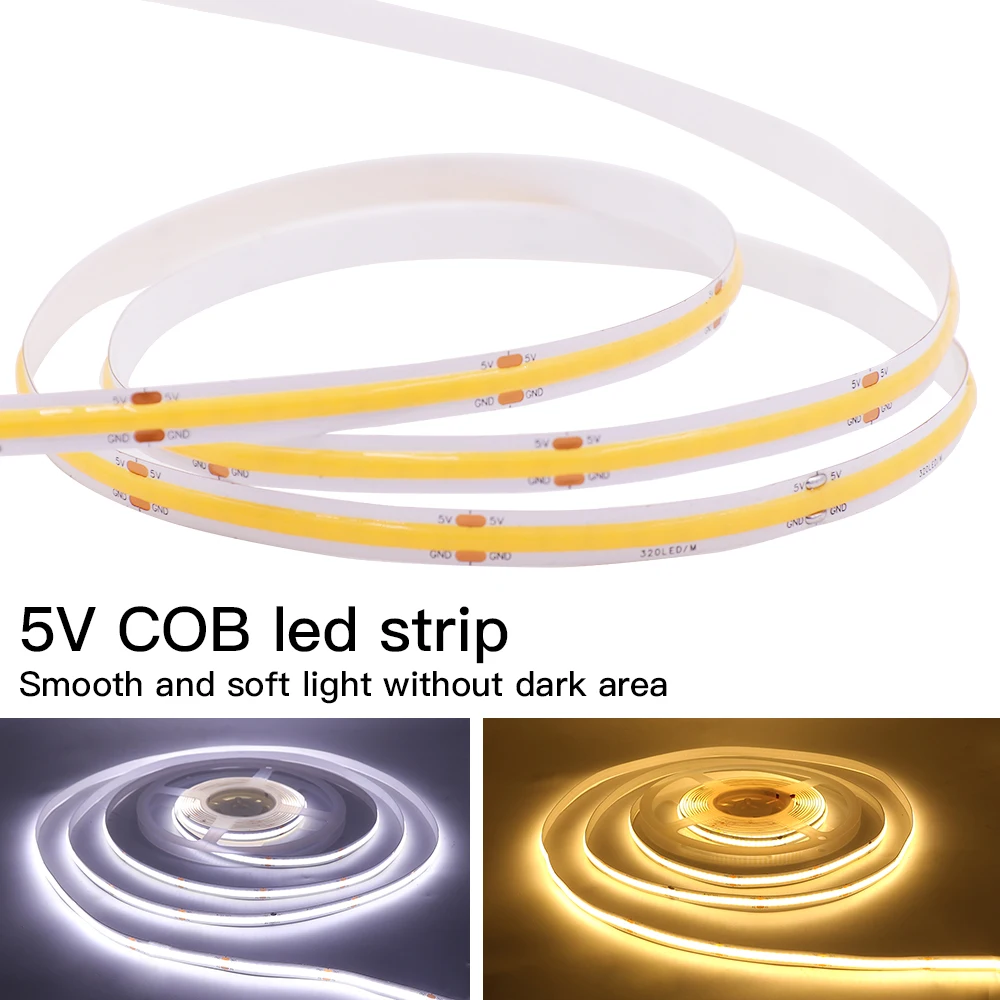 Светодиодная лента с монолитным блоком светодиодов 5 В, 320 светодиодовм, гибкая светодиодная лента с диодами, питание от USB, сенсорный диммер RA90 FOB, светильник лампа s 3000K 4000K 6000K