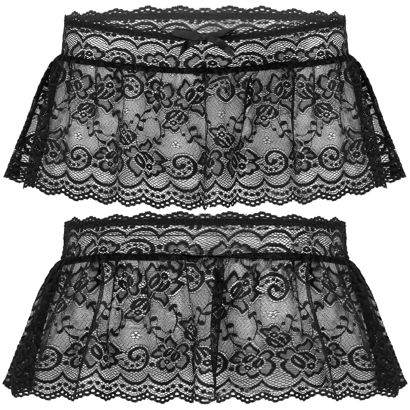 Особенности: Мужская Прозрачная Кружевная юбка с оборками, нижнее белье Sissy, ночная рубашка с бантом и цветочным узором, мини-юбка с низкой талией. Изготовлено из мягкой ткани, дышащей, приятной для кожи, удобной на ощупь и в носке, позволяет вам чувствовать себя хорошо. С прозрачным кружевом, цветочным узором, рюшами, низкой талией и украшением в виде банта. Прозрачная Кружевная мини-юбка для мужчин, идеально подчеркивает вашу очаровательную изгибу и делает вас горячим и привлекательным. Подходит для свадьбы, свидания, медового месяца, Дня Святого Валентина, юбилея и т. д.