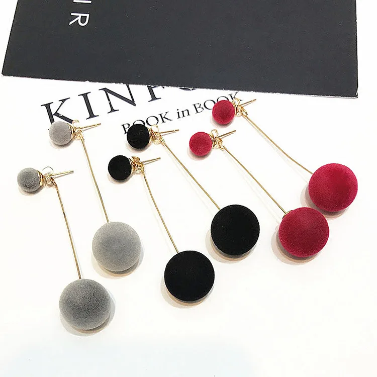 Новые трендовые красные черные плюшевые серьги-капли с шариками для женщин, корейские Оригинальные круглые длинные серьги с кисточками, эффектные ювелирные изделия, подарок