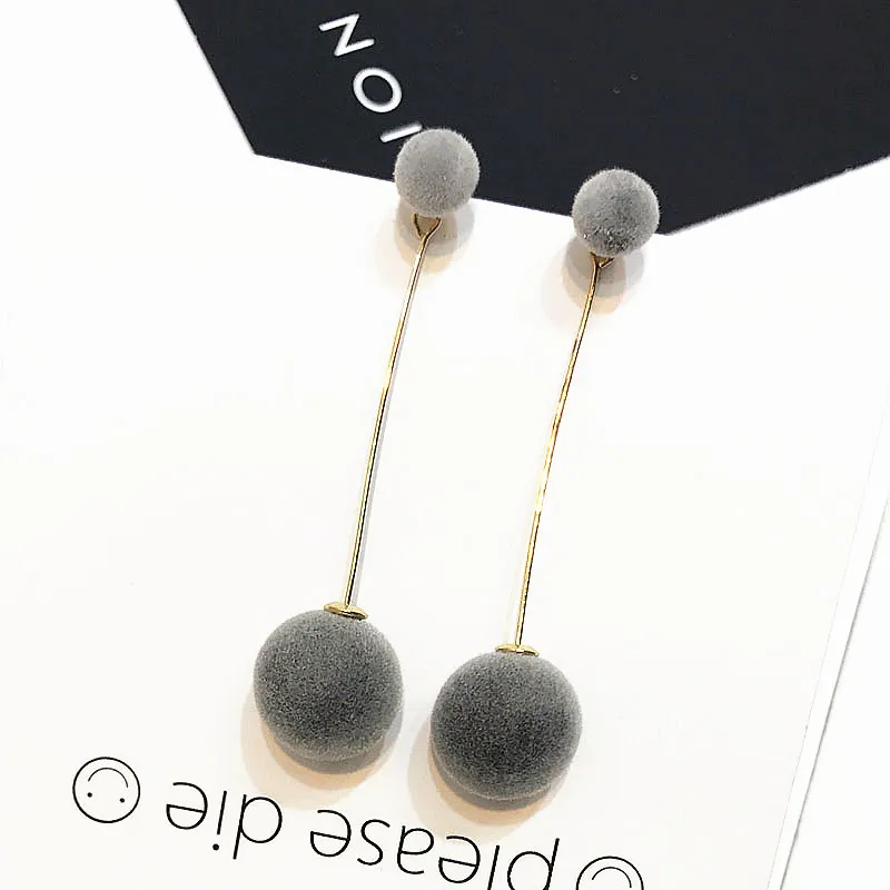 Висячие серьги с плюшевым шаром, модные корейские драгоценности, пр...