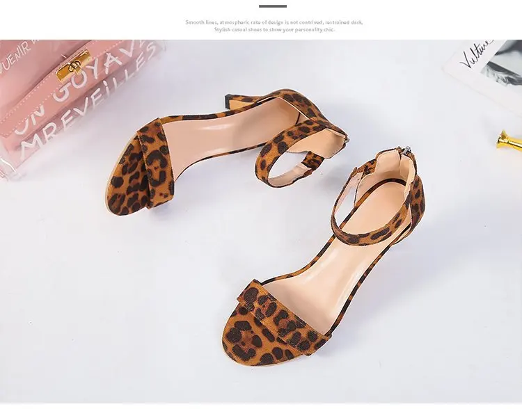Сандалии на высоком каблуке в стиле ретро; Однотонные леопардовые сандалии-гладиаторы с ремешком на щиколотке; Тонкие туфли на шпильке