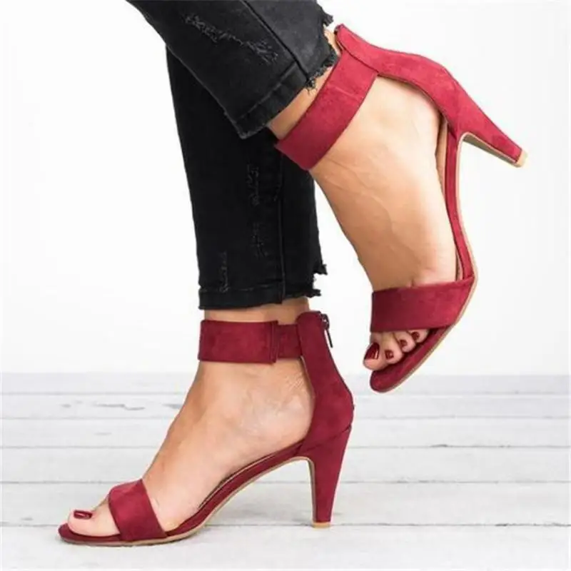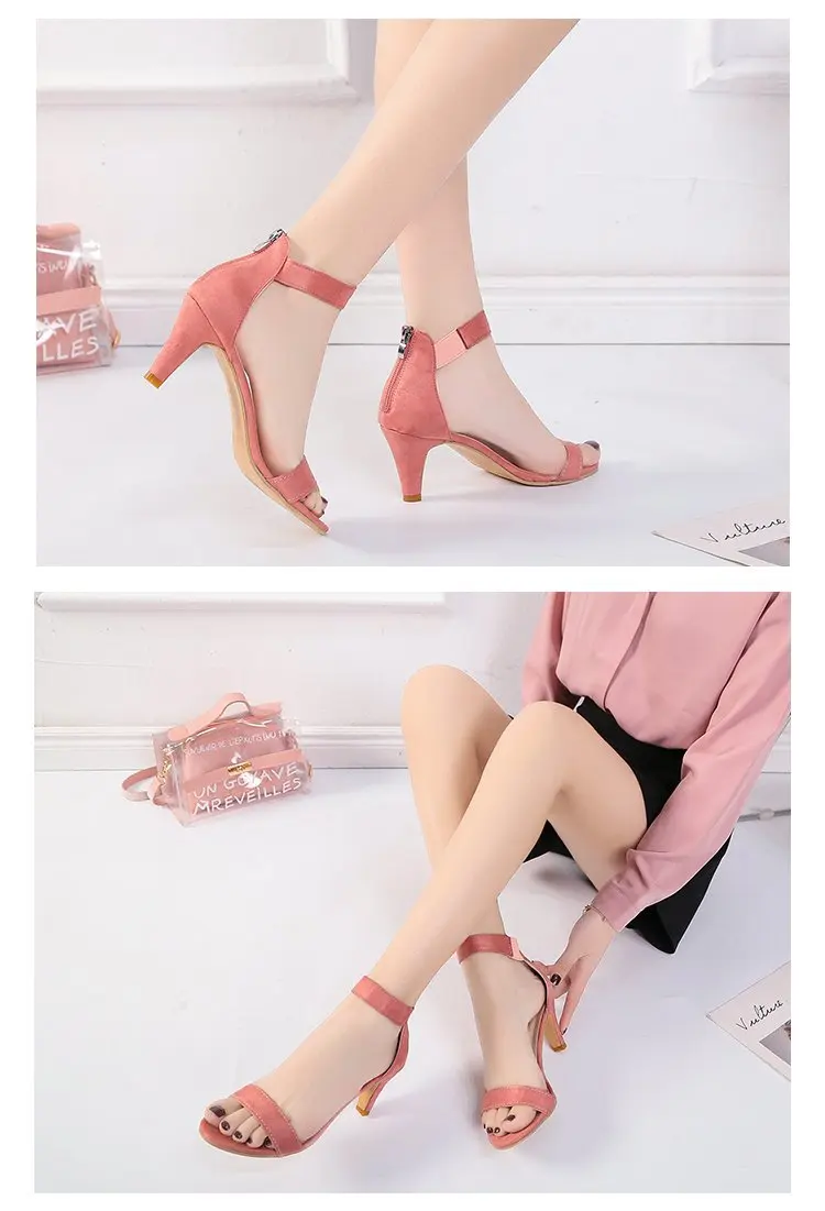 Сандалии женские на тонком высоком каблуке, замшевые босоножки на п...