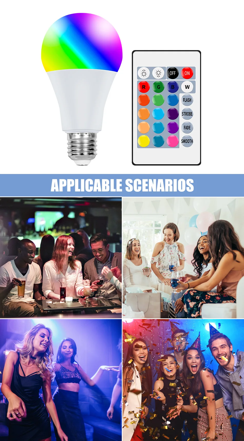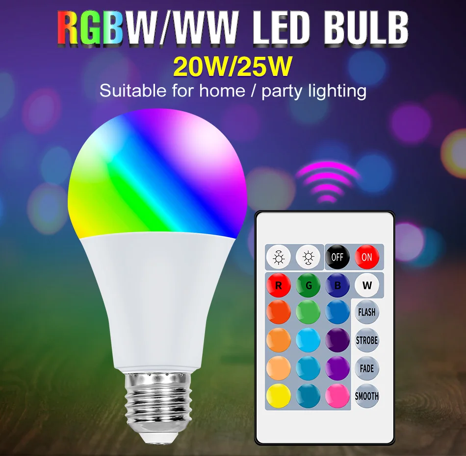 Название продукта:RGB+W/WWСветодиодный светильник (с 24-кнопочным ИК-пультом дистанционного управления)Тип цоколя: E27