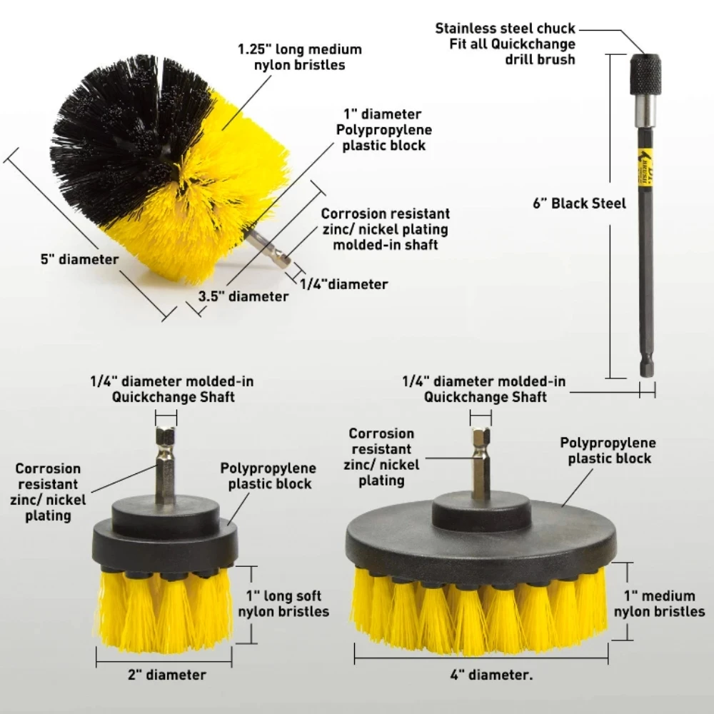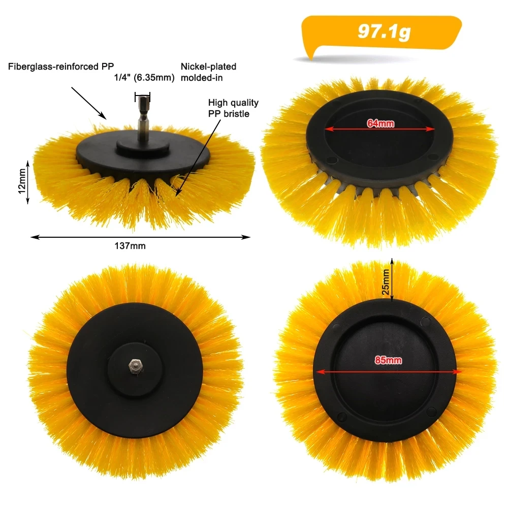 Особенности: Этот комплект содержит нейлоновые силовые щетки средней жесткости, которые будут прикреплены к вашему любимому беспроводному сверлу. 3 различных размера и формы кистей для чистки поверхностей ванной комнаты. Эти нейлоновые щетинки не царапаются и могут быть использованы на ваннах, раковинах, плинтусах, стеклопластиковые душевые кабины, душевых дверных дорожках и фарфоре. Все три кисти имеют четверть дюймовые Быстросменные валы, беспроводная дрель в комплект не входит. Спецификация: Тип: набор сверл для скруббера Материал: нейлон Цвет: желтый 4 шт. посылка включает в себя: 1 x 2in Scruber 1x3,5 дюйма Scruber 1 x Scruber 4in 1x6 дюймов патрон 3 шт. посылка включает в себя: 1 x 2in Scruber 1x3,5 дюйма Scruber 1 x Scruber 4in