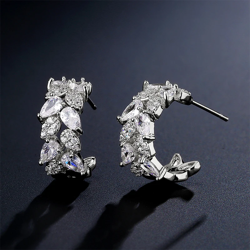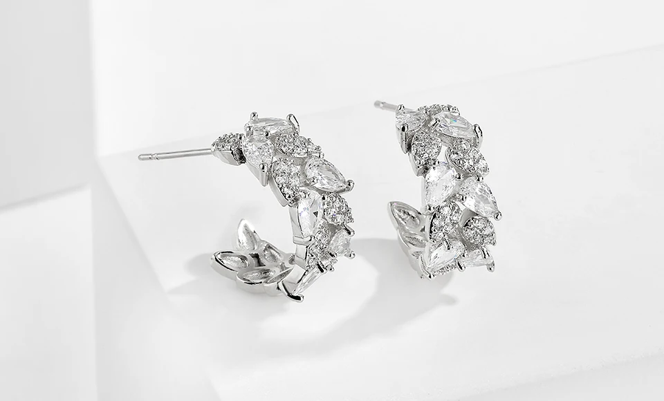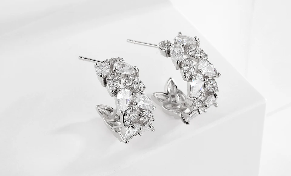 ZAKOL модные полукруглые серьги-кольца с фианитом в форме листа для женщин, элегантные вечерние повседневные аксессуары, оптовая продажа EP2399