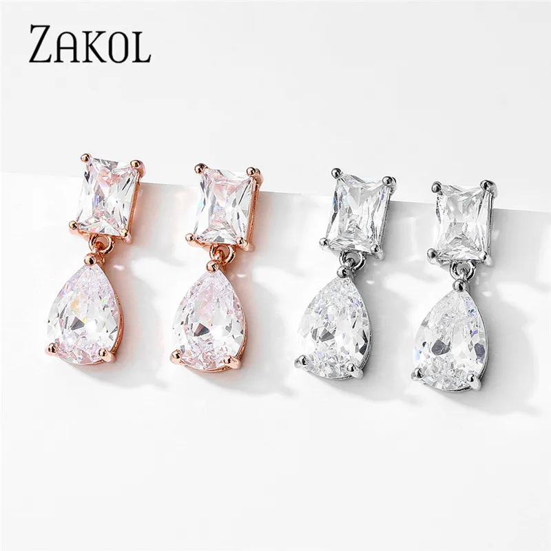 ZAKOL классические квадратные висячие серьги с кубическим цирконием для женщин, модные свадебные ювелирные изделия для помолвки EP1035
