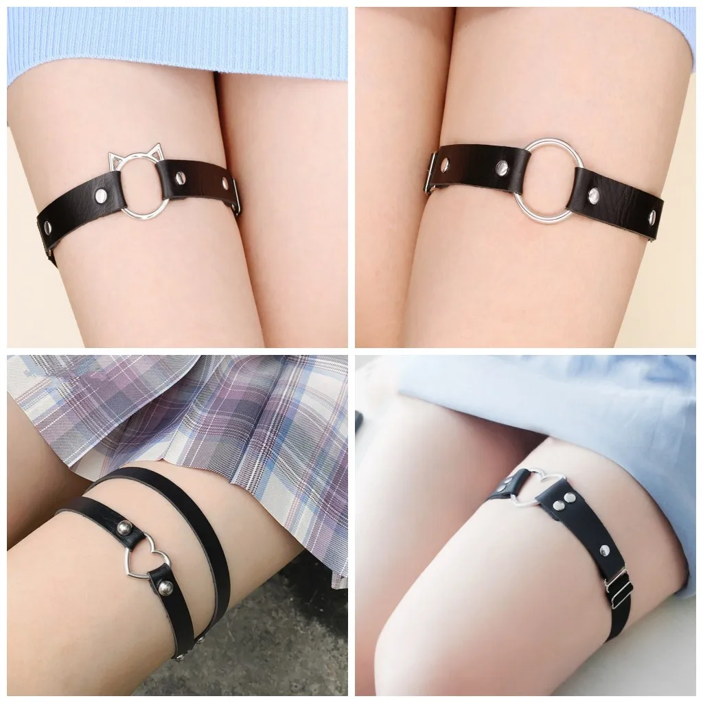 Подвязка с сердцем из искусственной кожи женская, готический пояс в стиле панк из искусственной кожи, регулируемый пояс с кольцом для ног, подарок