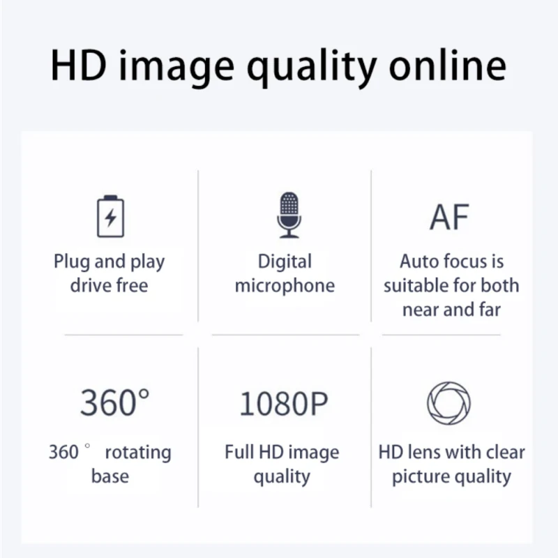 Веб-камера 1080P Full HD с микрофоном и USB-разъемом, вращающаяся на 360 градусов