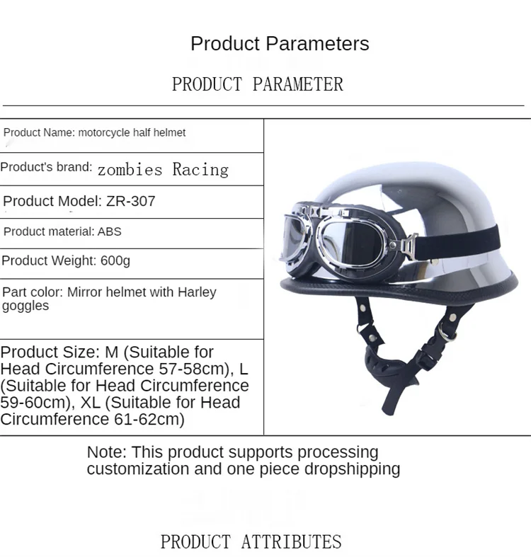 1. Возможны отклонения в 1 см вследствие измерений вручную.Особенности:Высокопрочный корпус из АБС-пластика, легкий и ударопрочныйЛегкий и легкий дизайн уменьшает шум ветраМногослойный защитный буферный слой EPS может обеспечить самую передовую способность поглощения энергии.Высококачественная кожаная подкладка.Удобная мягкая 3d-подкладка изготовлена из дышащей технической ткани, гипоаллергенна, полностью снимается и моется.Впускные и Выхлопные порты обеспечивают достаточную вентиляцию, чтобы сохранить прохладуСъемный дизайн для защиты носа. БЫСТРО снимите основание объектива для легкой замены объективаABS уши надежно закреплены на корпусе шлемаСистема быстроразъемной пряжки zigzag обеспечивает идеальную защитуСпецификация:Название бренда: ARTHURСтиль изделия: ПолулицоМатериал корпуса: АБС-пластик или кожаМатериал подкладки: 100% полиэстерРазмер: S, M, L, XL, XXLПол: унисекс для взрослых, детей; Мужчин; Женщин; ДетейПрименимый сезон: шлем на четыре сезонаПосылка включает в себя: 1 * шлемПосылка включает в себя:Мотоциклетный шлем-1 шт.В шлеме Нет батарейХарактеристика:Сертификат DOT