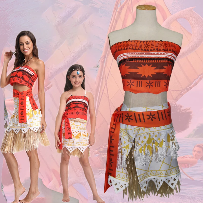 Костюм для косплея Моана на Хэллоуин для взрослых и детей, топ-труба с юбкой из травы, Женский костюм для сценического представления и ролевых фильмов