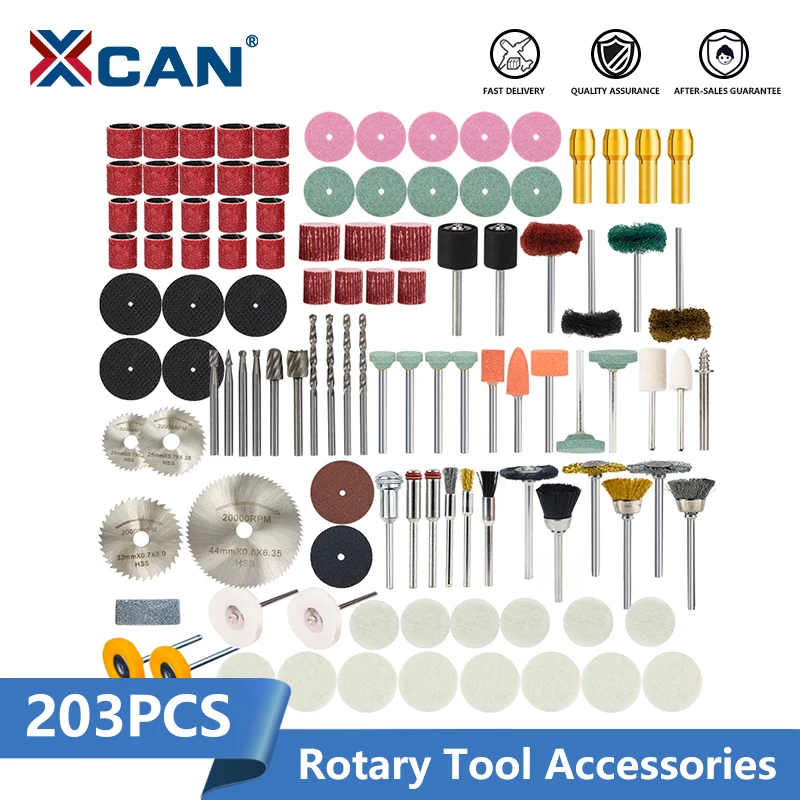 Аксессуары для вращающихся инструментов XCAN, 203 шт., абразивные инструменты для электрической мини-дрели Dremel, полировальный шлифовальный инструмент