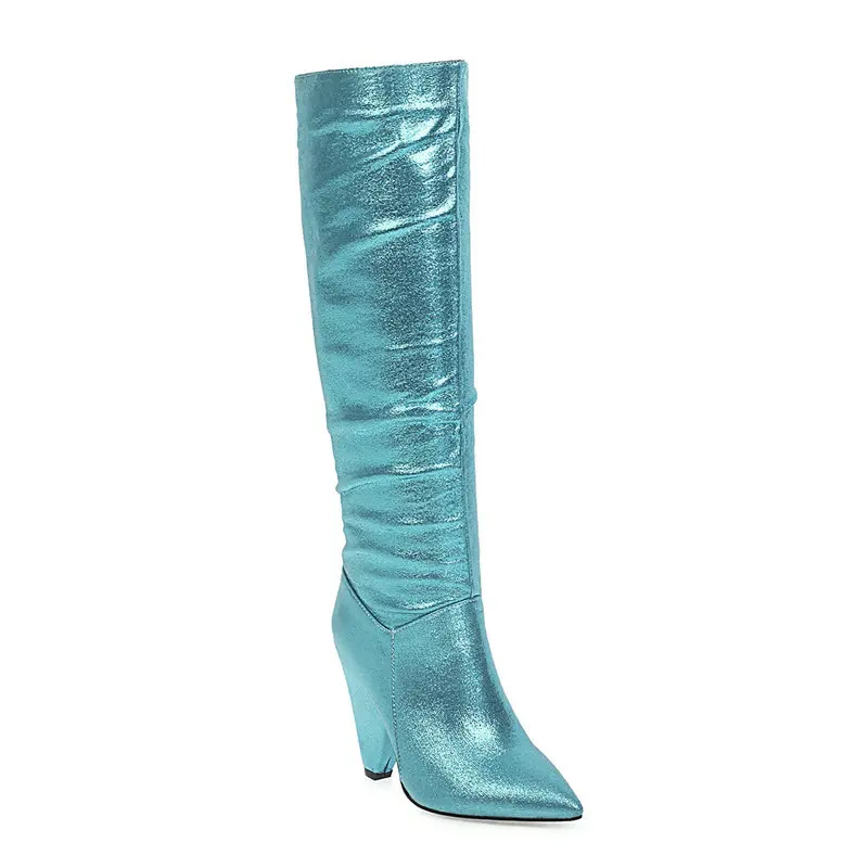 Женские сапоги до колена на танкетке, с блестками, на высоком каблуке, осенне-зимние сапоги в западном стиле, без застежки, большие размеры 42 43
