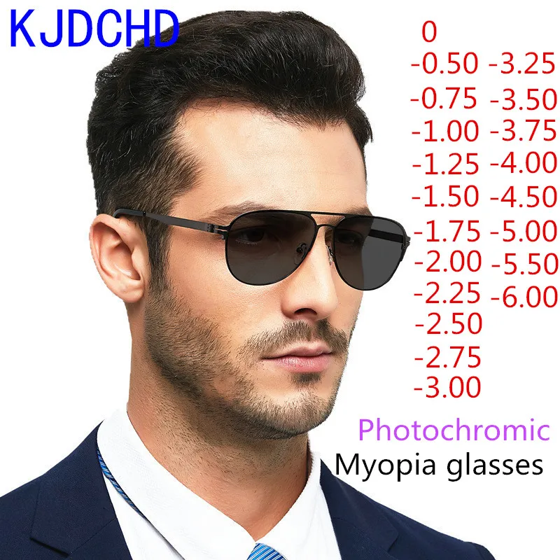 Фотохромные готовые женские и мужские очки для близорукости, асферические Твердые полимерные линзы, полностью Металлическая оправа, мощные линзы, очки с диоптриями