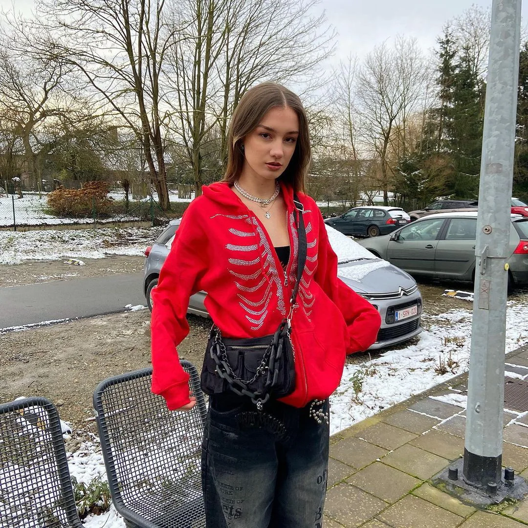Y2K Стразы худи Скелет женские готические гранж на молнии оверсайз ...