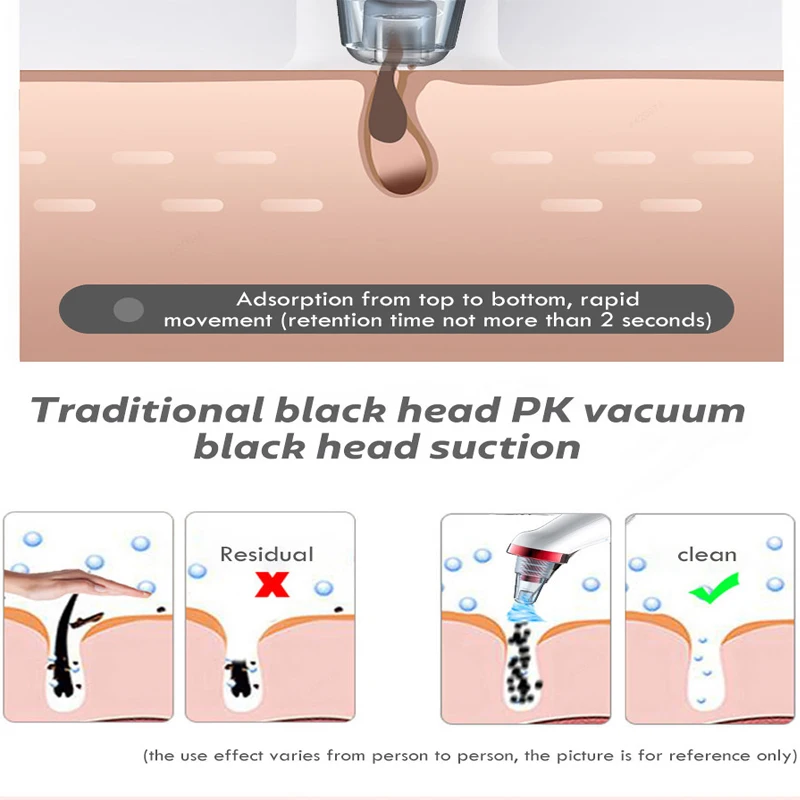 5. 3 уровня всасывания: Этот комедоновый экстрактор имеет 5 типов всасывания, 3 уровня всасывания, подходит для всех типов кожи, сухой, нейтральной, смешанной или жирной