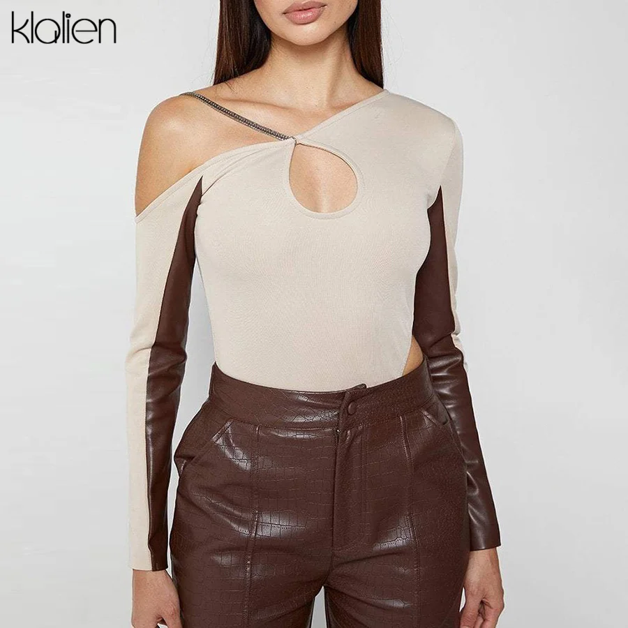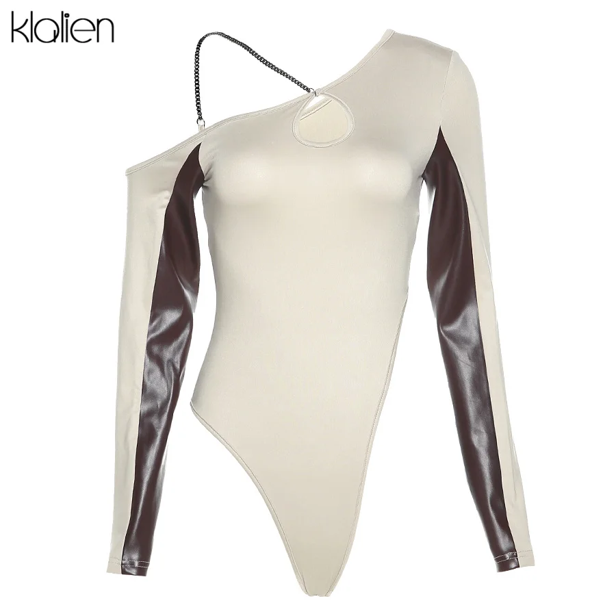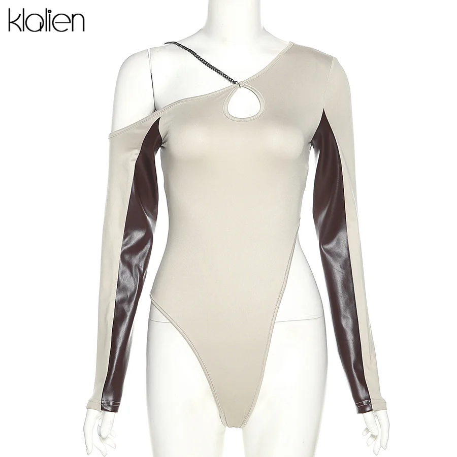Повседневное пикантное лоскутное боди KLALIEN с открытыми плечами, облегающее эластичное боди для женщин, осенняя новая уличная мода Y2K