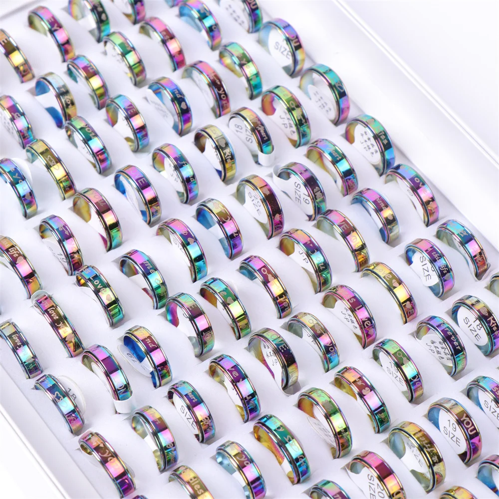 100 шт.лот модные многоцветные кольца из нержавеющей стали для женщ...