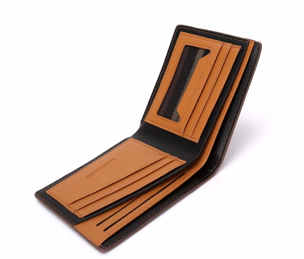 Мужской кожаный кошелек Bogesi, однотонный, короткий, дизайнерский ...