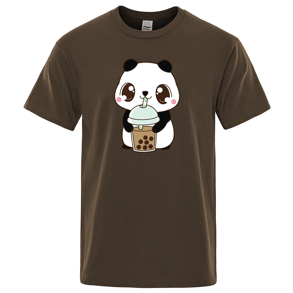 Футболка мужская с принтом милой панды, свободная уличная одежда в стиле хип-хоп, топ из чистого хлопка в Корейском стиле, в стиле оверсайз, на лето