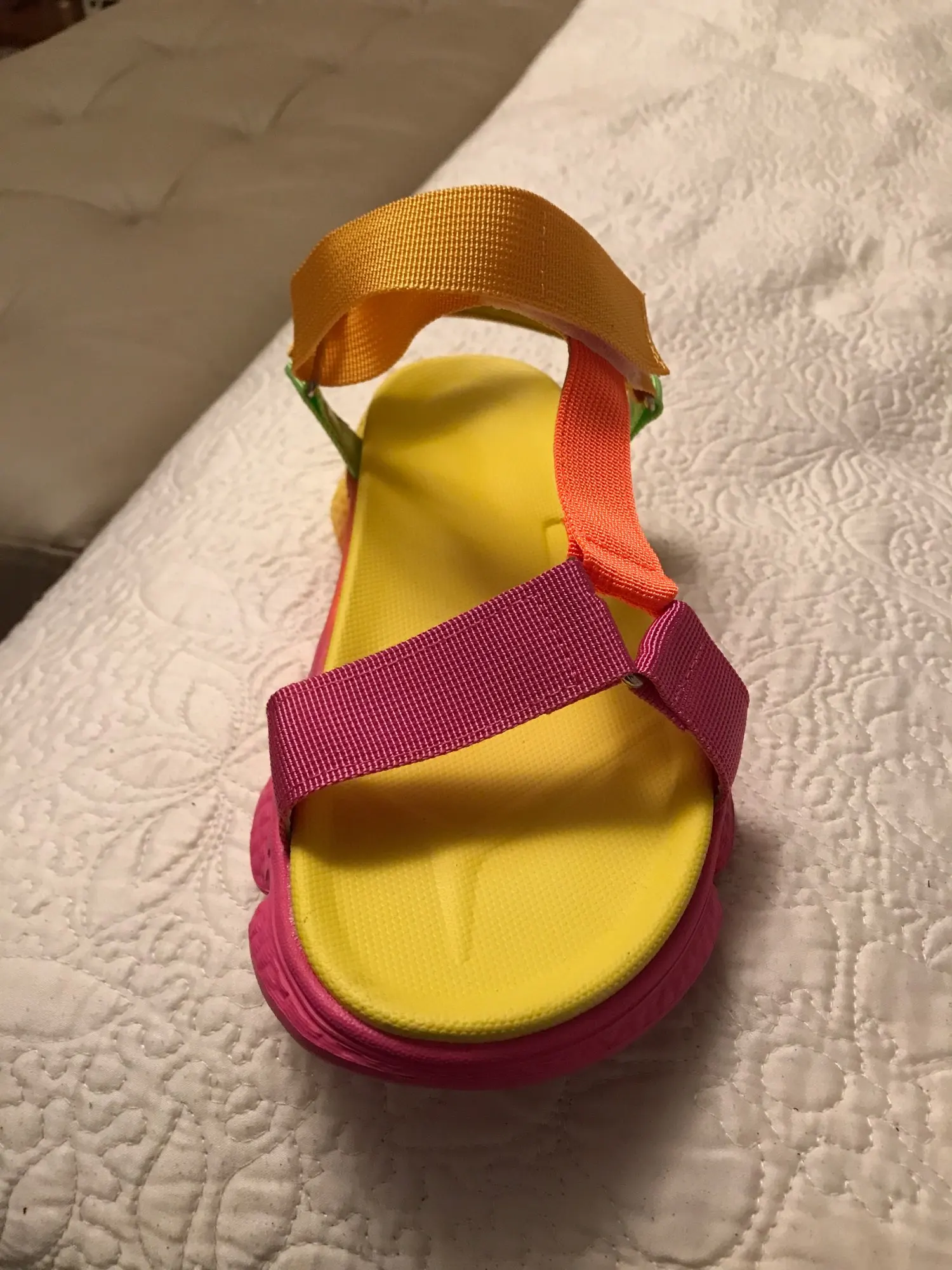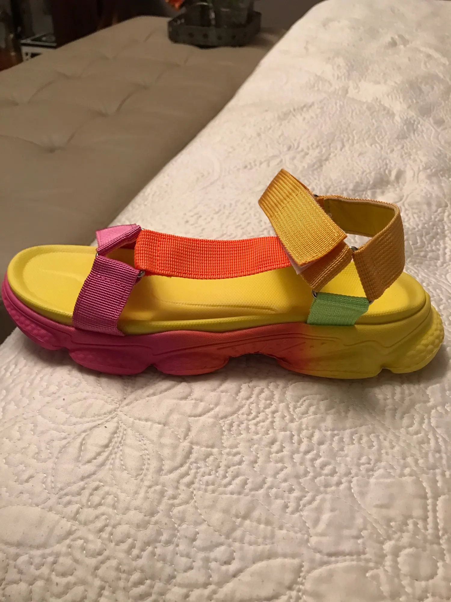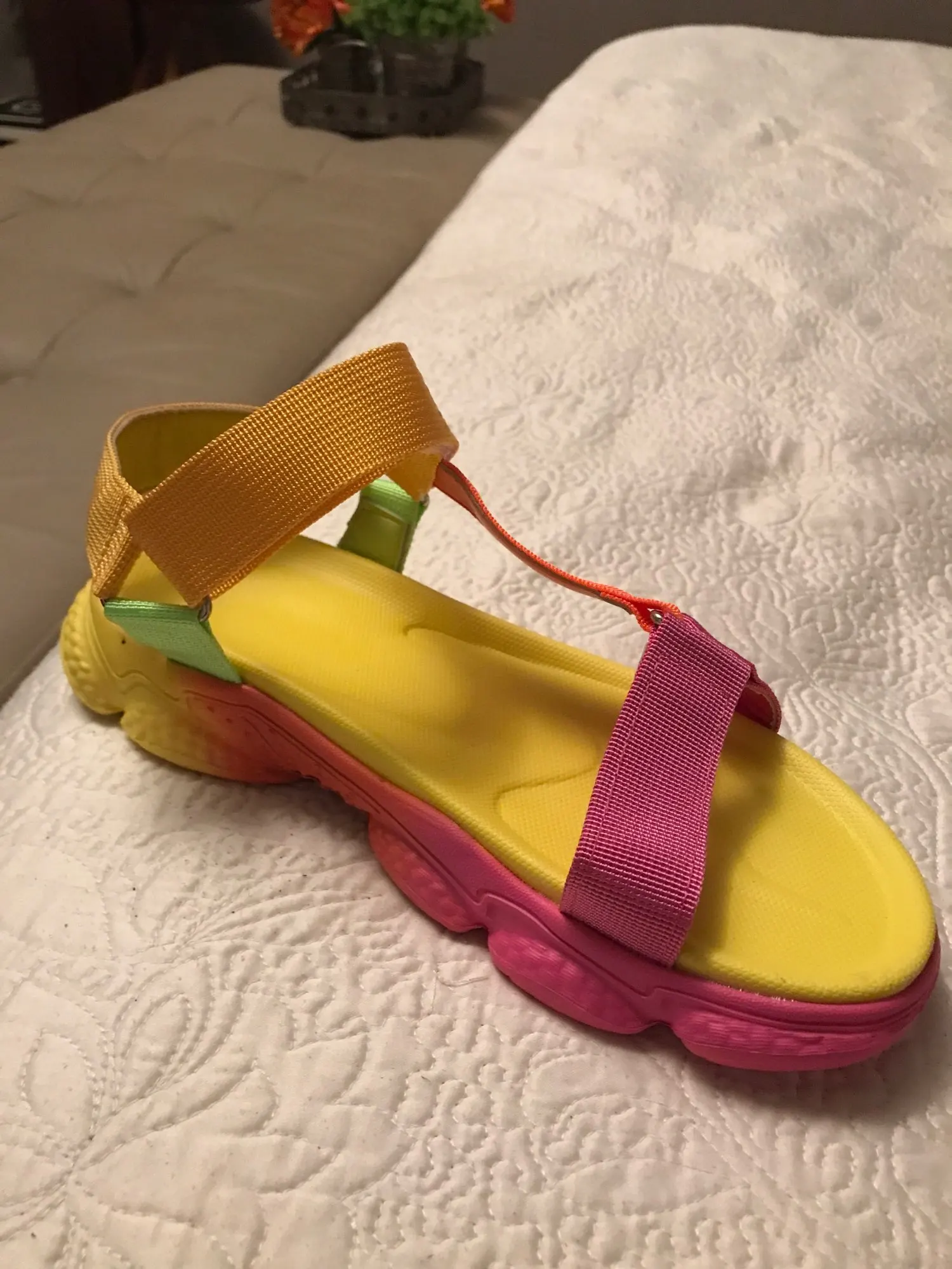 Изображение выглядит лучше. Носите 38, и этот размер маленький, почти нет. Хорошо подходит для пляжа и неровной местности, потому что основание прочное и имеет неровности подушек. Умеренно доволен, но покупка фото в любом случае