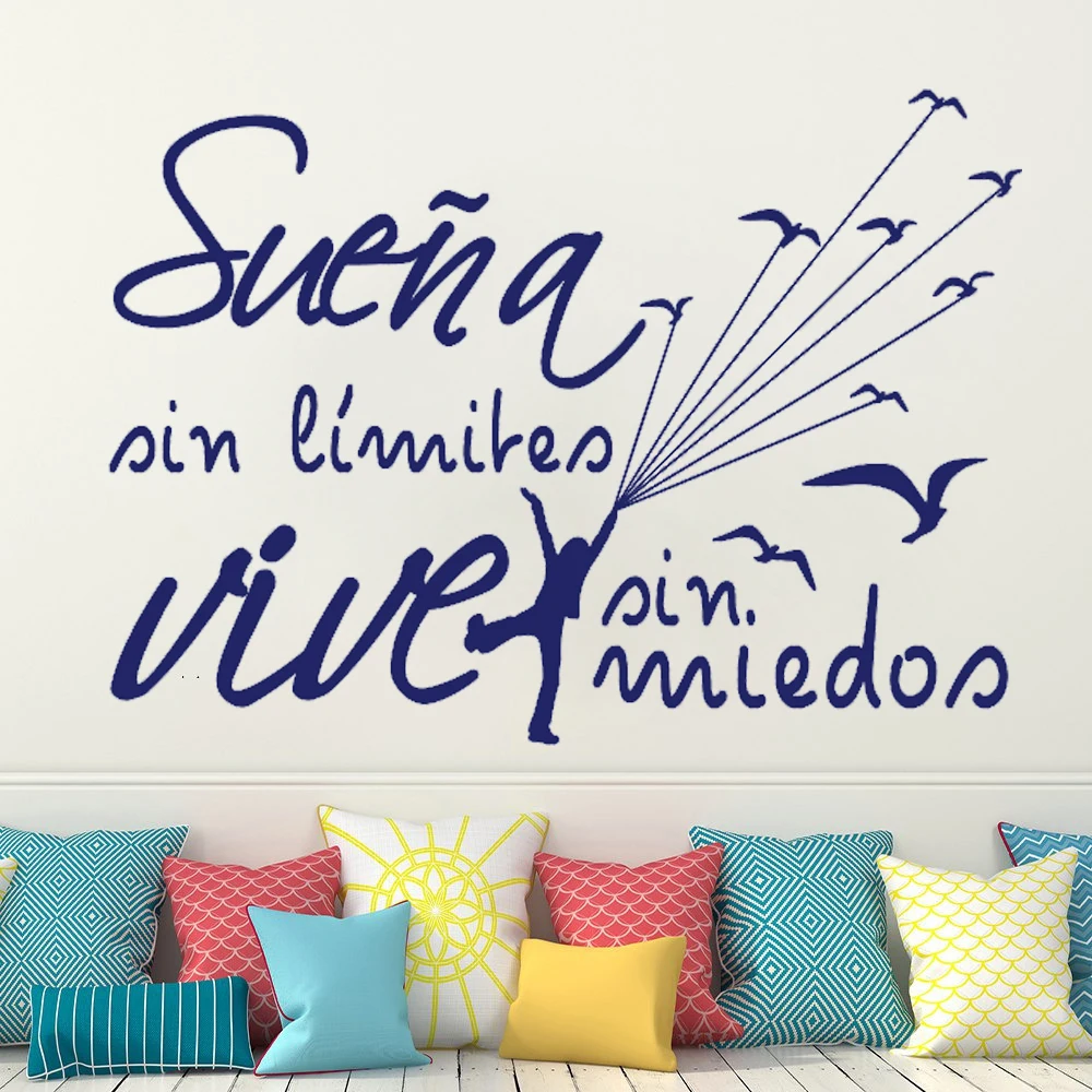 Мультяшные наклейки на стену испанской мечты, детская комната, вдохновляющие цитаты, наклейки на стену SUEA SIN MIEDOS VIVE SIN, фрески для гостиной RU2604