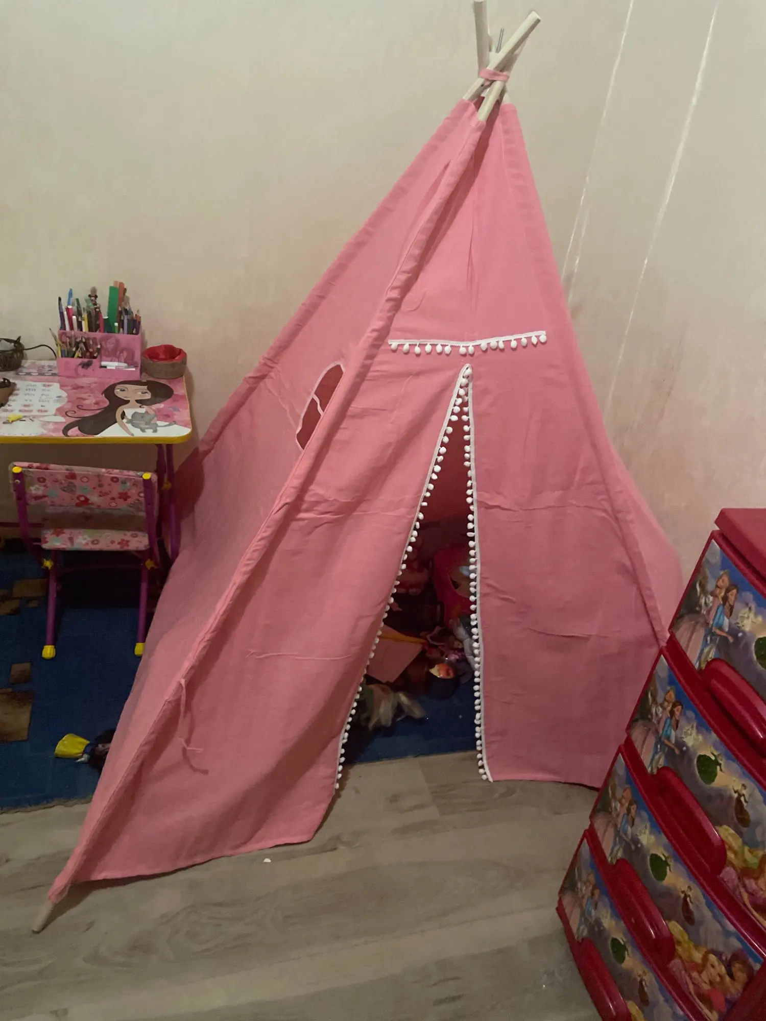 Особенности:-Красивая Игровая палатка для детей-Изготовлен из прочного и качественного хлопкового холста-Гладкая отделка деревянных палок-Окно сбоку для легкой проверки детей
