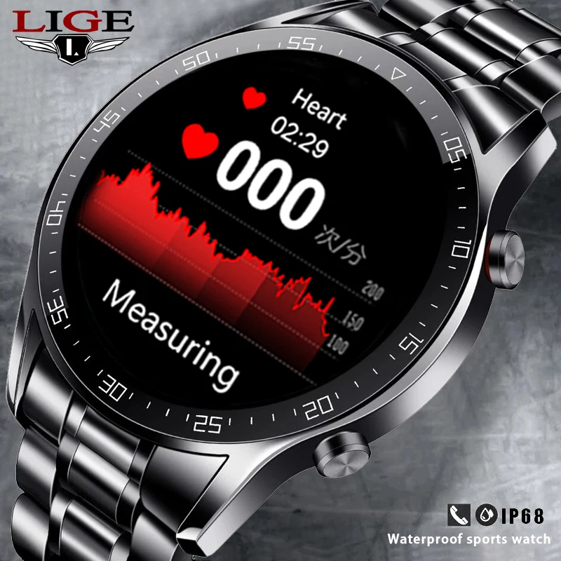 Смарт-часы LIGE мужские водонепроницаемые (IP68) с сенсорным экраном и Bluetooth