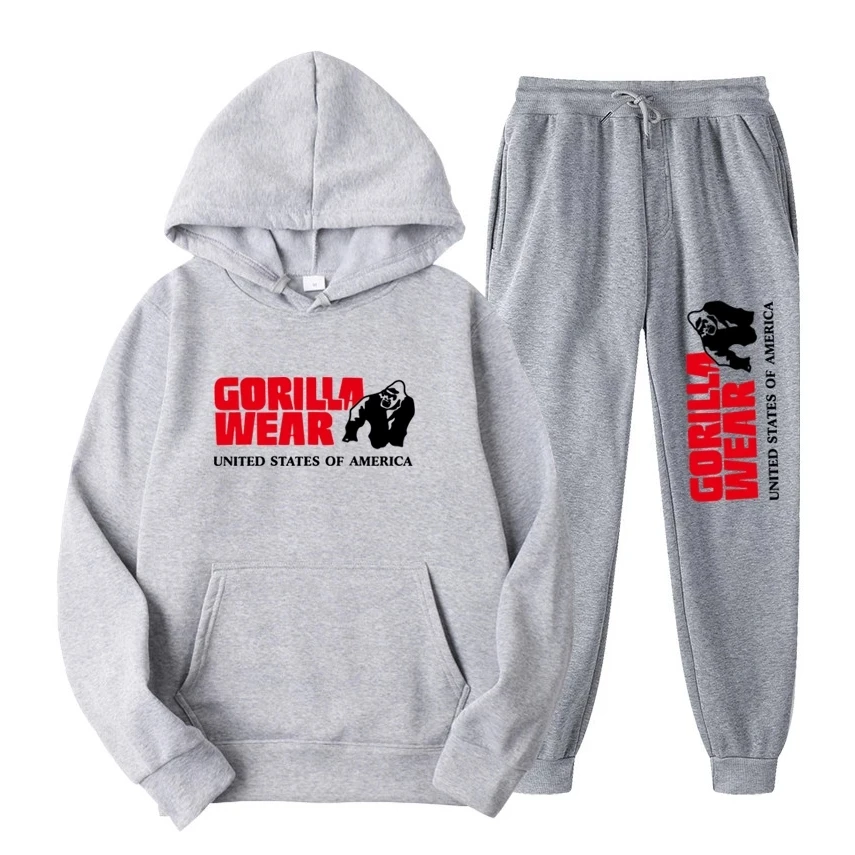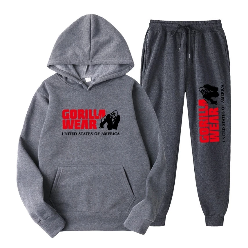 Мужской спортивный костюм из двух предметов, Повседневная Толстовка с капюшоном и штаны, спортивный костюм для спортзала на осень и зиму, 2021