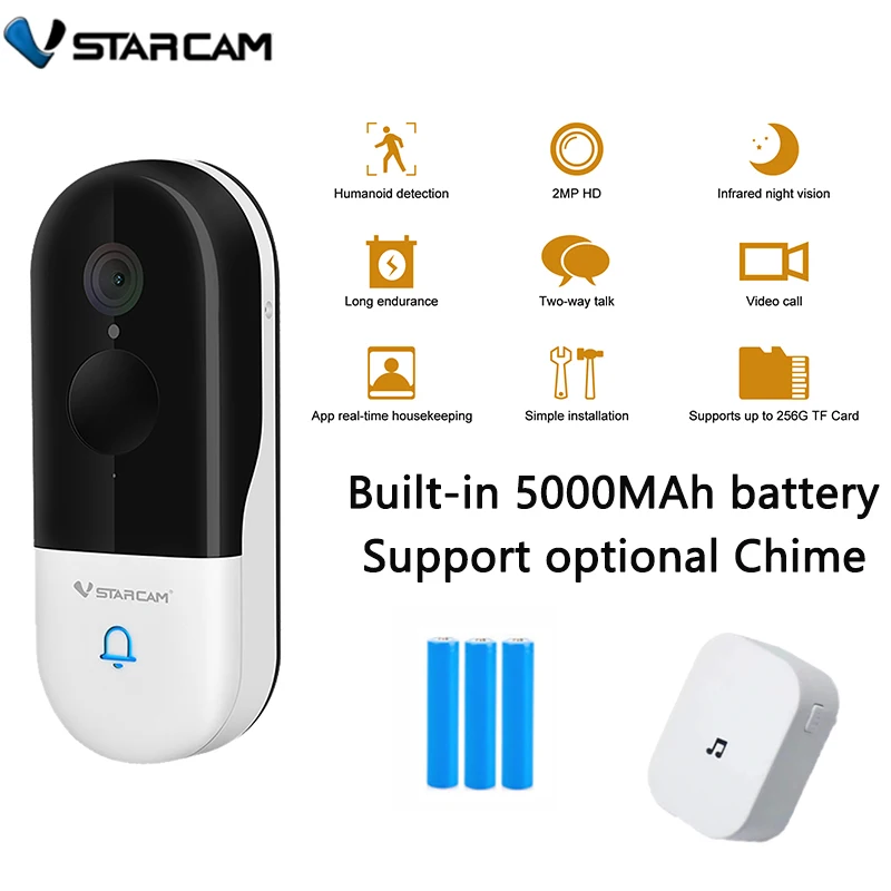 Видеодомофон Vstarcam, беспроводная камера с 2 программируемыми датчиками и аккумулятором, с двухсторонней связью, с ИК-датчиком присутствия, для умного дома