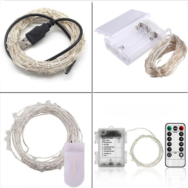 1 м, 2 м, 3 м, 5 м, 10 м, медная проволока, светодиодные гирлянды, праздничное освещение, Сказочная гирлянда для рождественской елки, украшения для свадебной вечеринки
