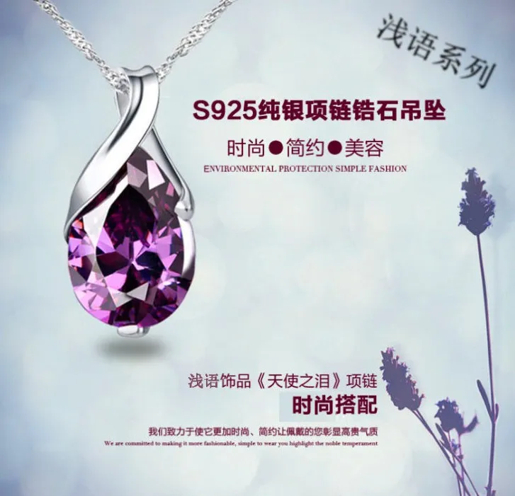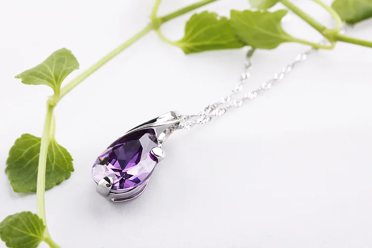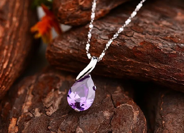 Женское ожерелье из серебра 925 пробы с аметистом и каплями воды