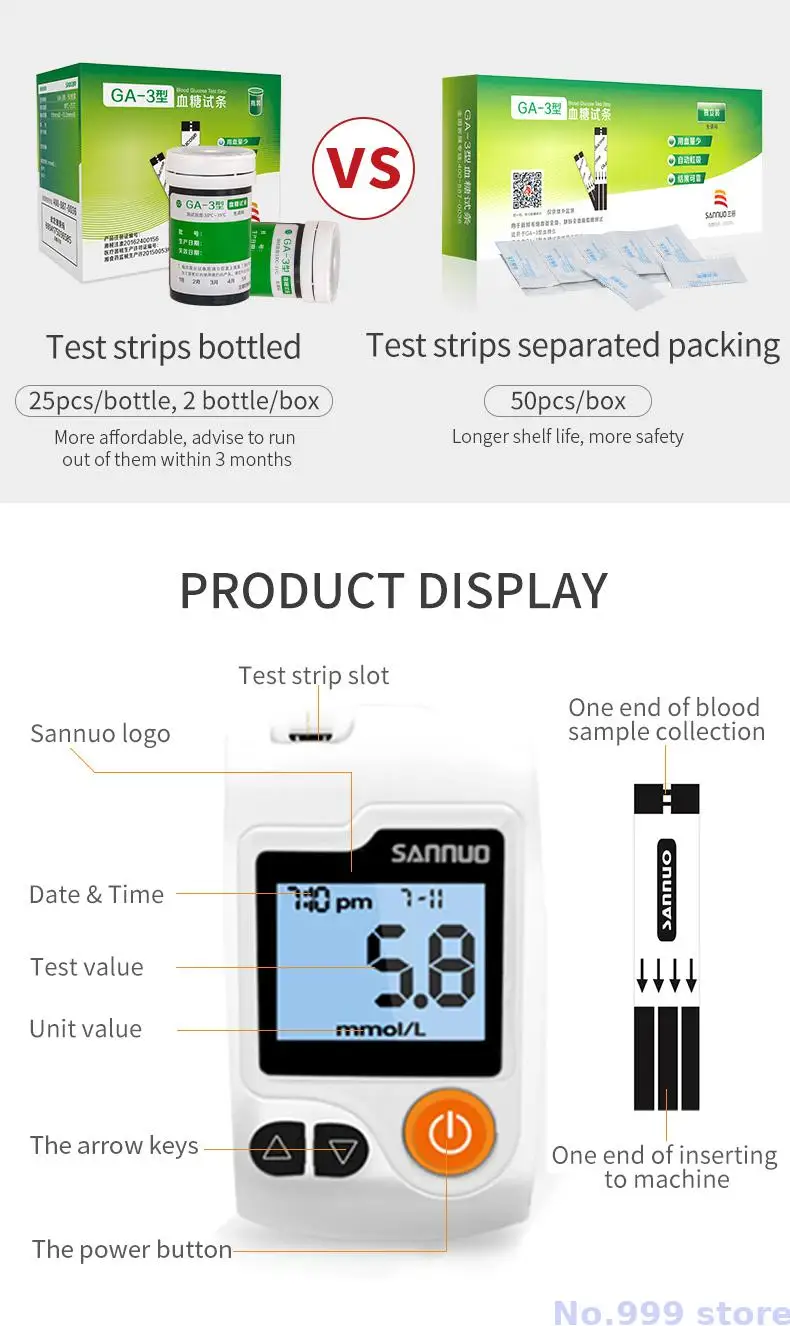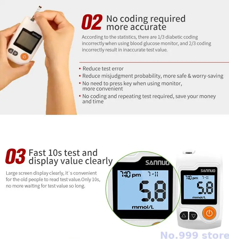 кровь тест полоски глюкометра Медицинские устройства глюкометр Sino...