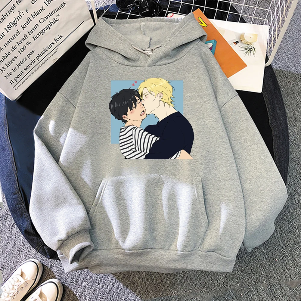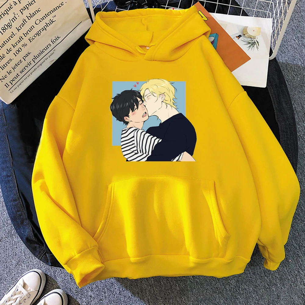 Толстовка Yaoi мужская с капюшоном, аниме банан, рыба, ясень, рысь, рысь, с капюшоном, модная Свободная кофта с длинным рукавом, теплая зимняя парная кофта